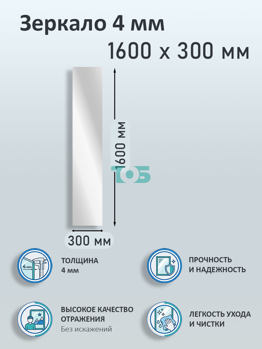 Зеркало 4мм 1600х300мм
