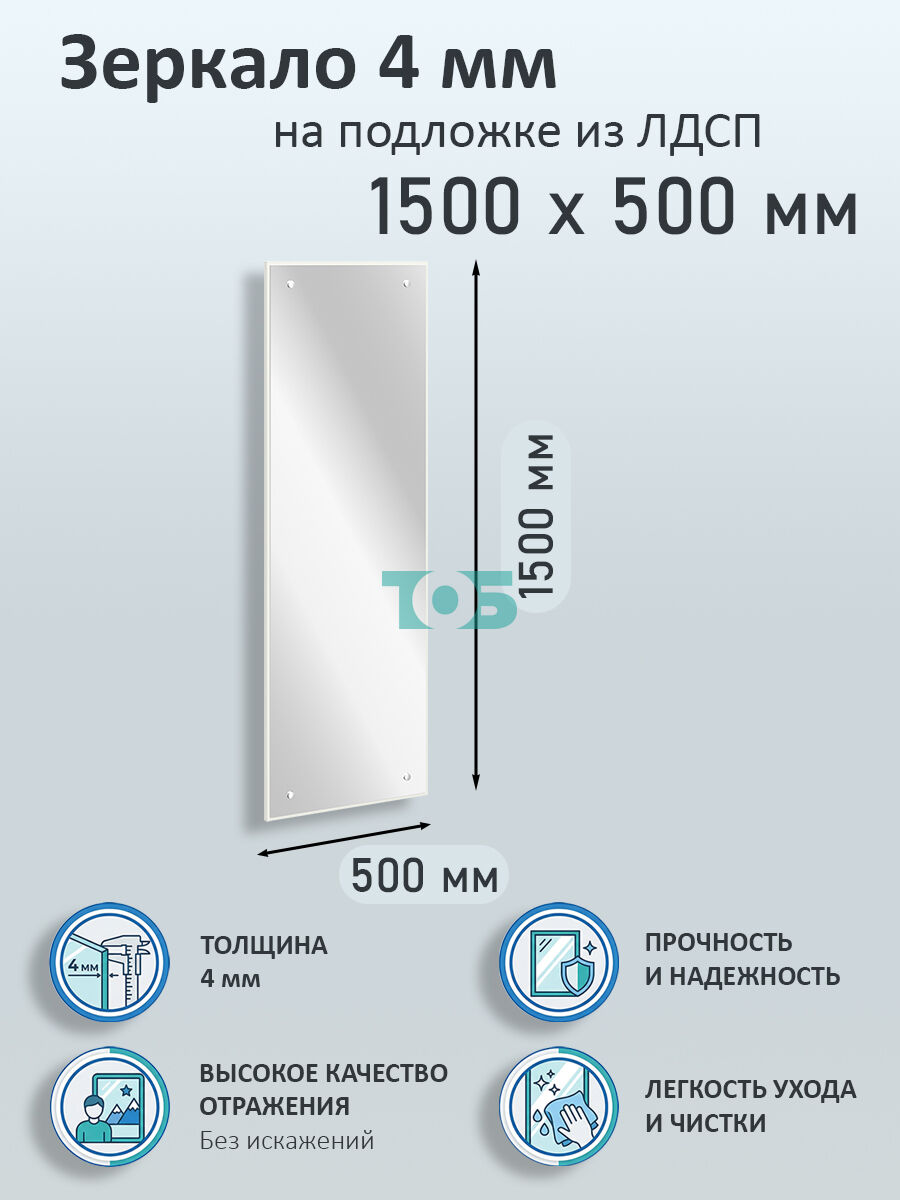 Зеркало 4мм 1500х500мм на подложке из ЛДСП
