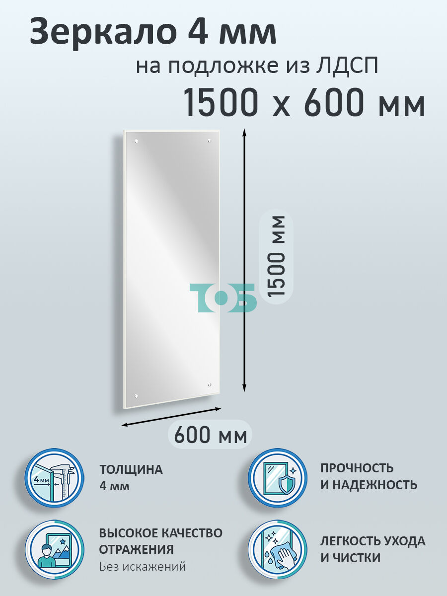 Зеркало 4мм 1500х600мм на подложке из ЛДСП