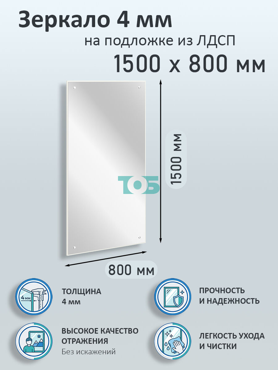Зеркало 4мм 1500х800мм на подложке из ЛДСП