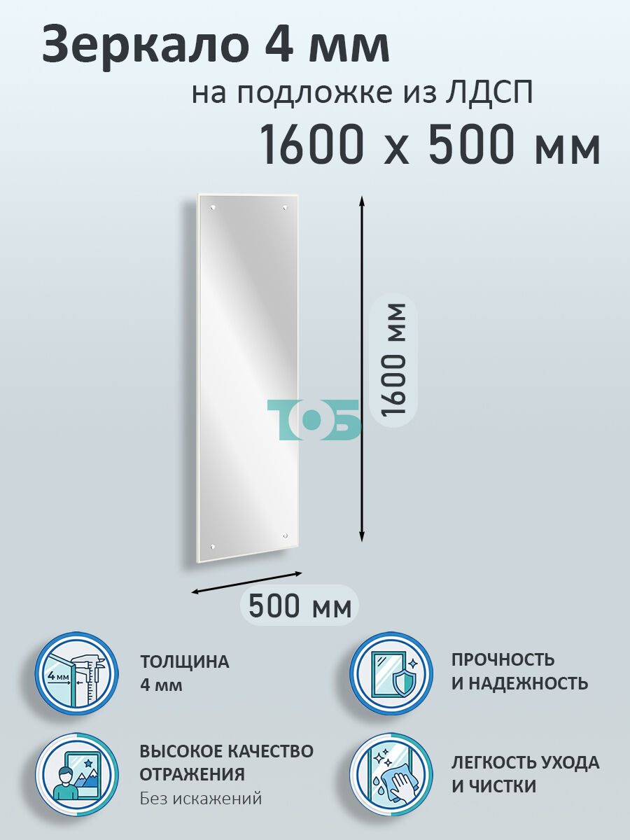 Зеркало 4мм 1600х500мм на подложке из ЛДСП