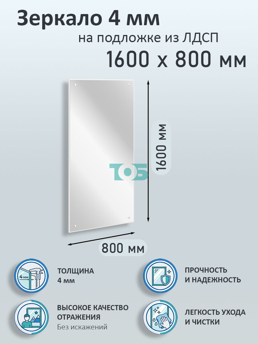 Зеркало 4мм 1600х800мм на подложке из ЛДСП