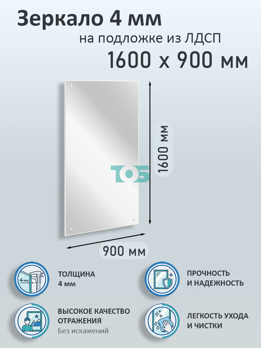 Зеркало 4мм 1600х900мм на подложке из ЛДСП