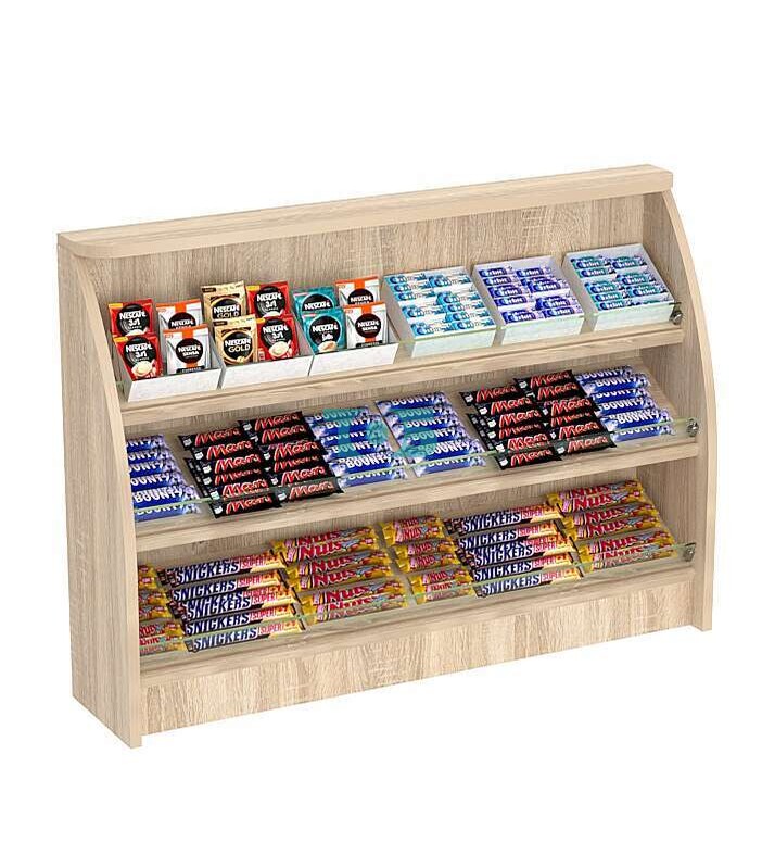 - прилавок включает три наклонные полки из ДСП со стеклянными бортиками высотой 50 мм;