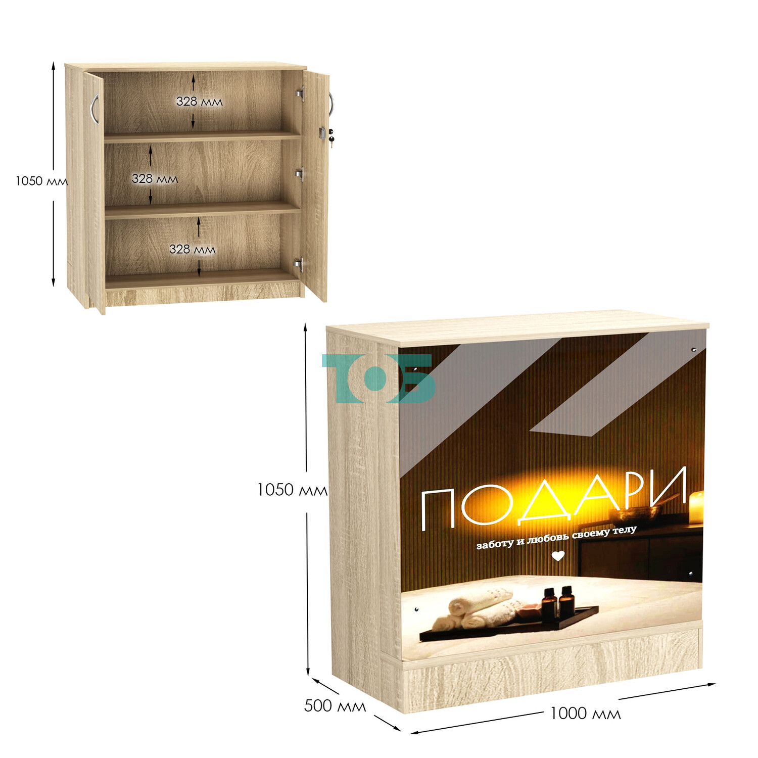 - со стороны продавца прилавок имеет две полки и распашные двери с врезным замком;