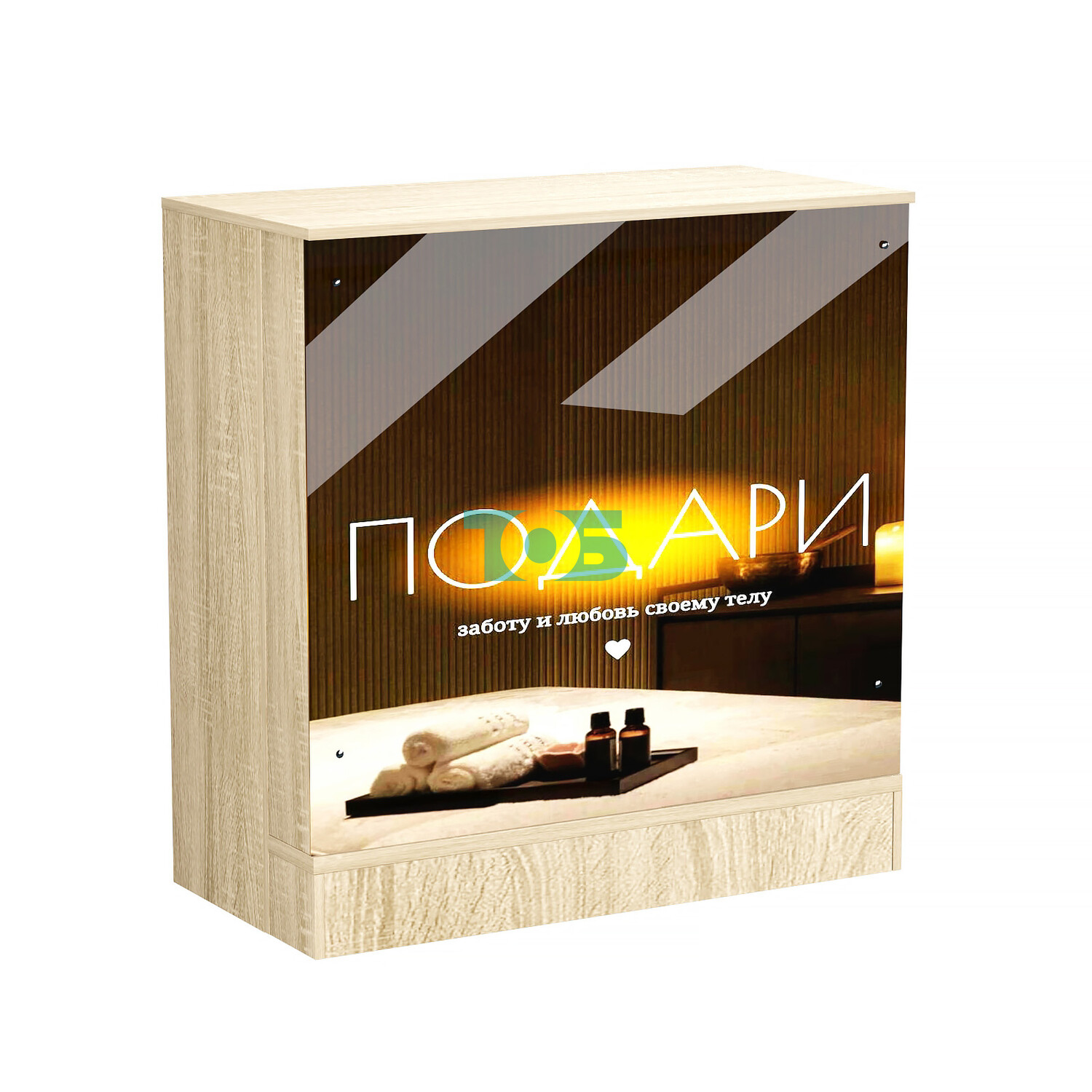 - фасадная часть прилавка укомплектована четырьмя светодиодными светильниками нейтрального света, размером 300х300 мм каждый;