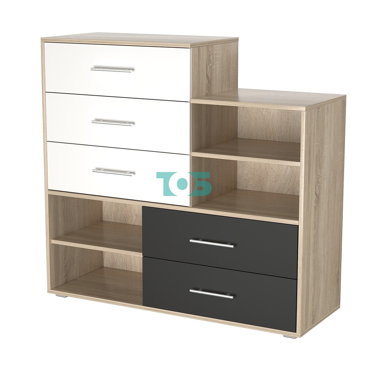 • Комод ВЕКТОР КВ-04, Дуб сонома,Черный, Белый