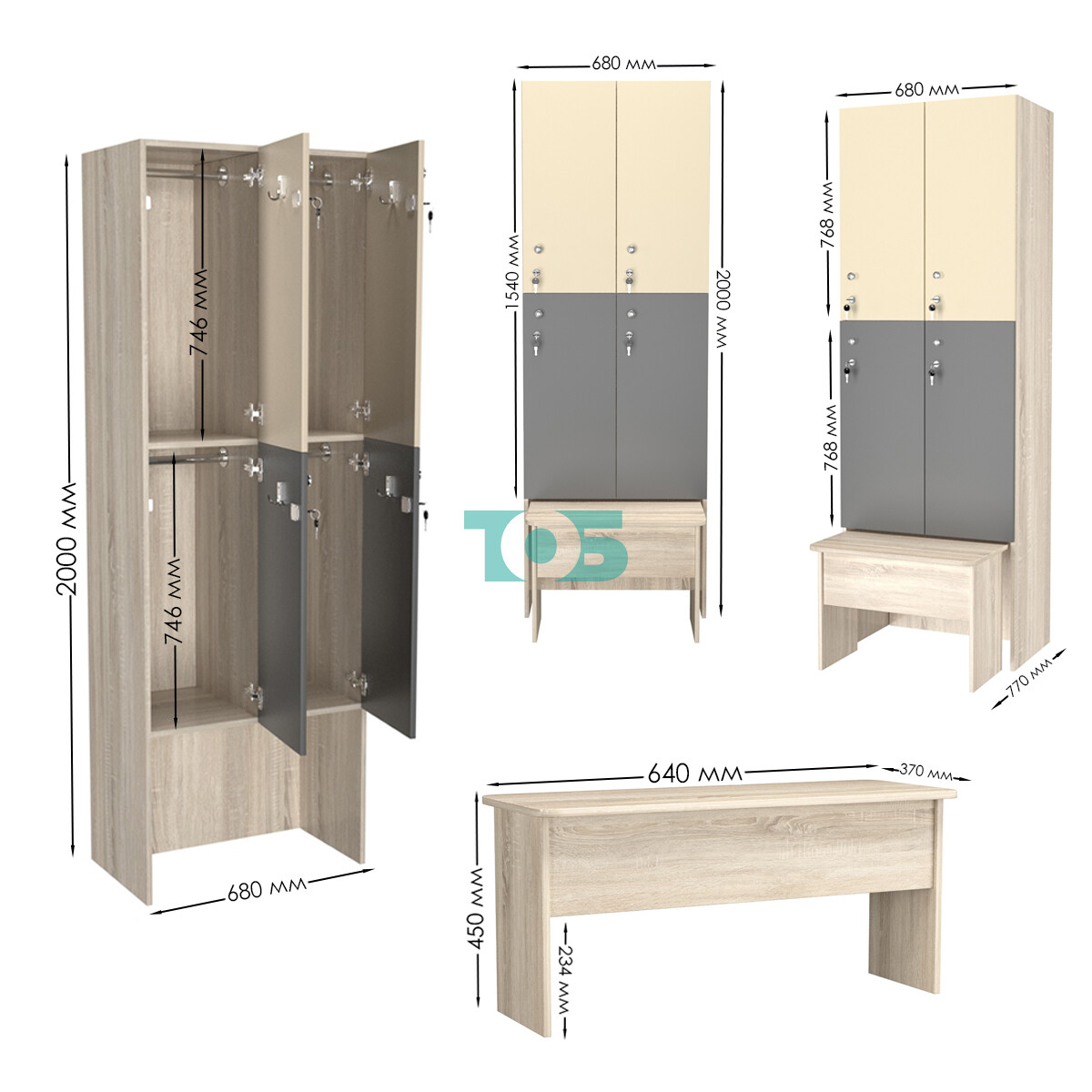 Вместимость: шкаф рассчитан на использование четырьмя людьми одновременно. В нём предусмотрено четыре отделения для вещей.