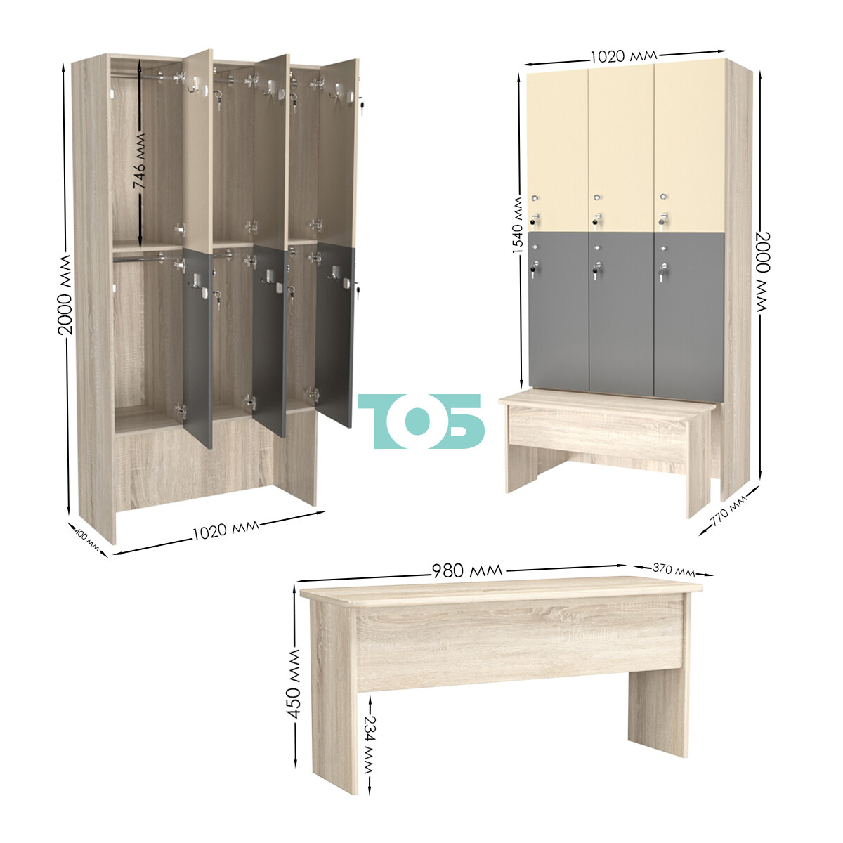 Габариты: глубина шкафа составляет 400 мм, а глубина скамейки — 370 мм. Такие размеры позволяют оптимально использовать пространство и обеспечивают удобство при использовании.