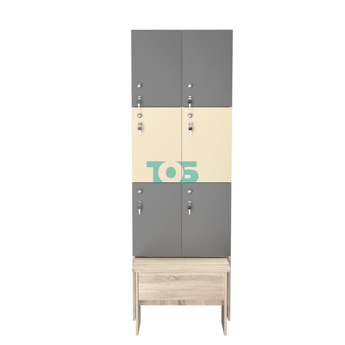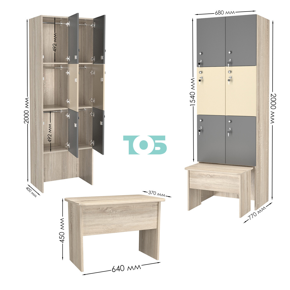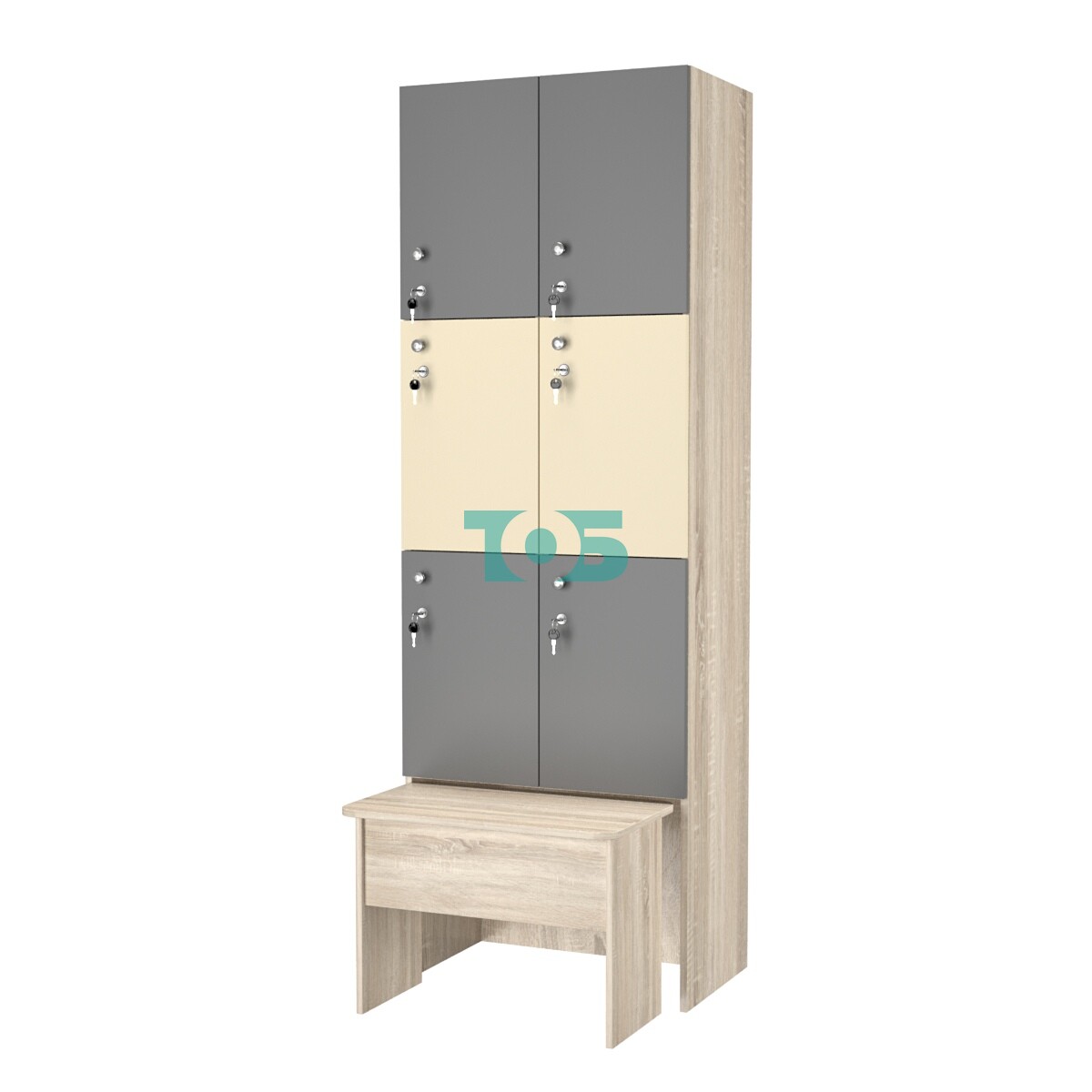 Вместимость: шкаф рассчитан на использование шестью людьми одновременно. В нём предусмотрено шесть отделений для вещей.