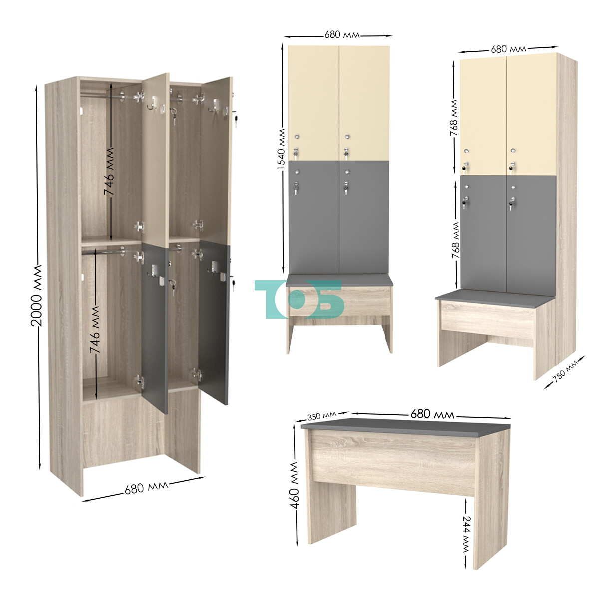 Габариты: глубина шкафа составляет 400 мм, а глубина скамейки — 350 мм. Такие размеры обеспечивают достаточное пространство для хранения вещей и удобство использования.