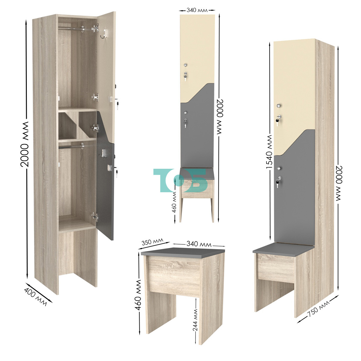 Габариты: глубина шкафа составляет 400 мм, а глубина скамейки — 350 мм. Такие размеры позволяют эффективно использовать пространство и обеспечивают удобство при использовании.