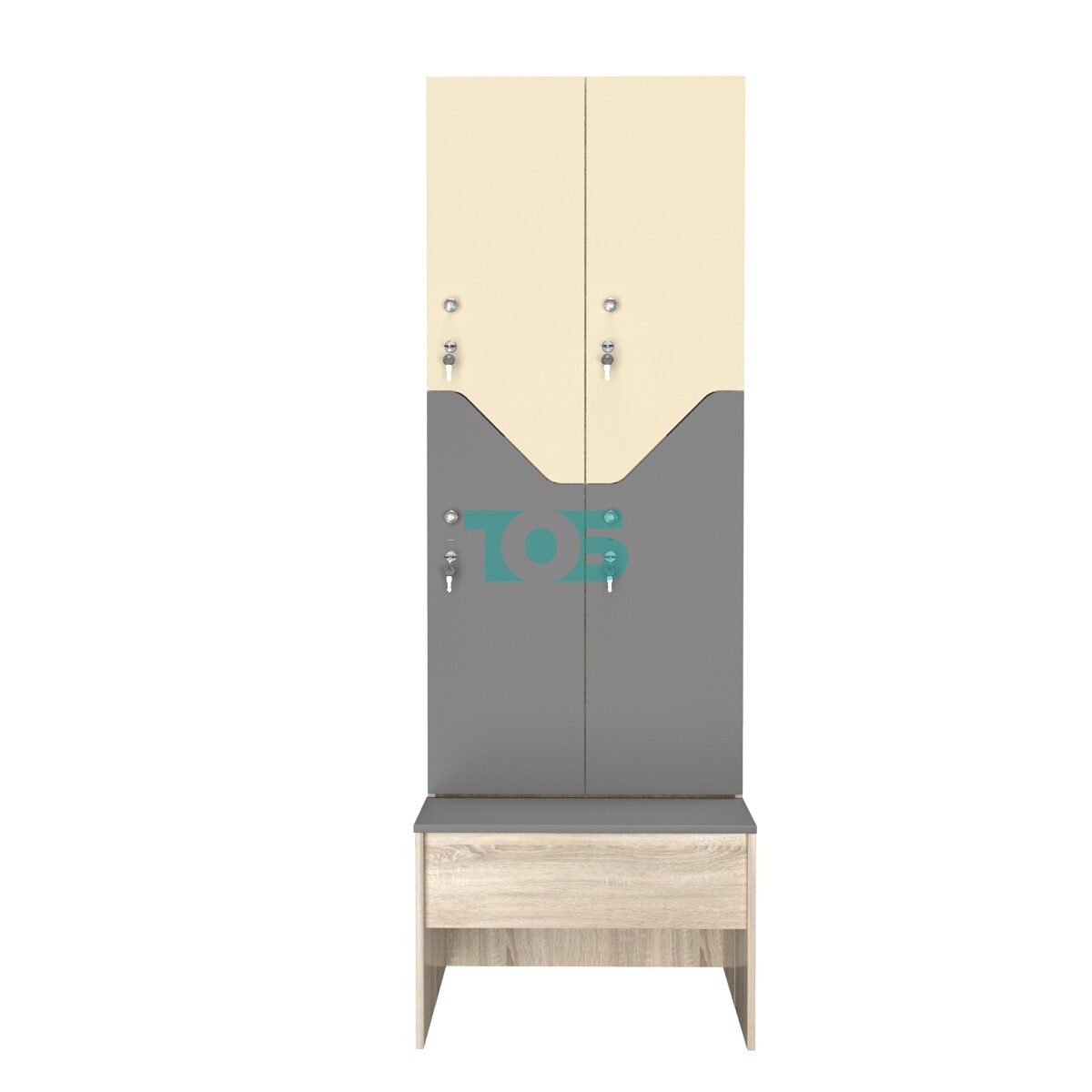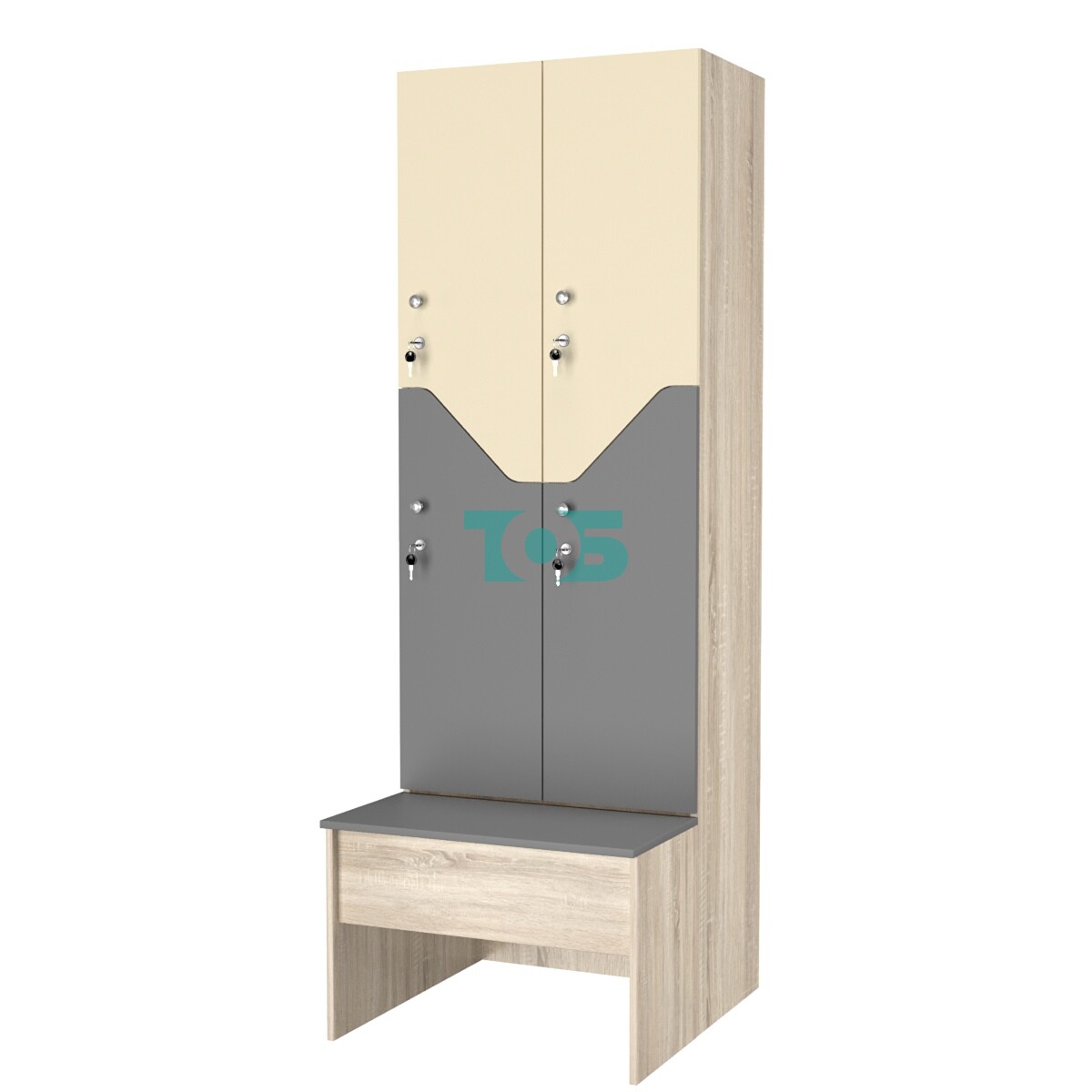 Скамейка: наличие скамейки делает шкаф более функциональным и удобным в использовании, позволяя рационально организовать пространство раздевалки.