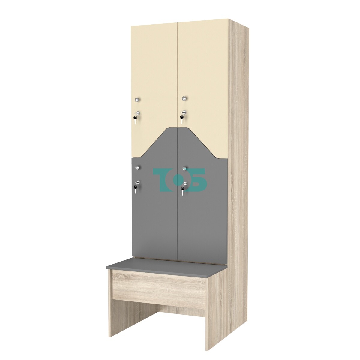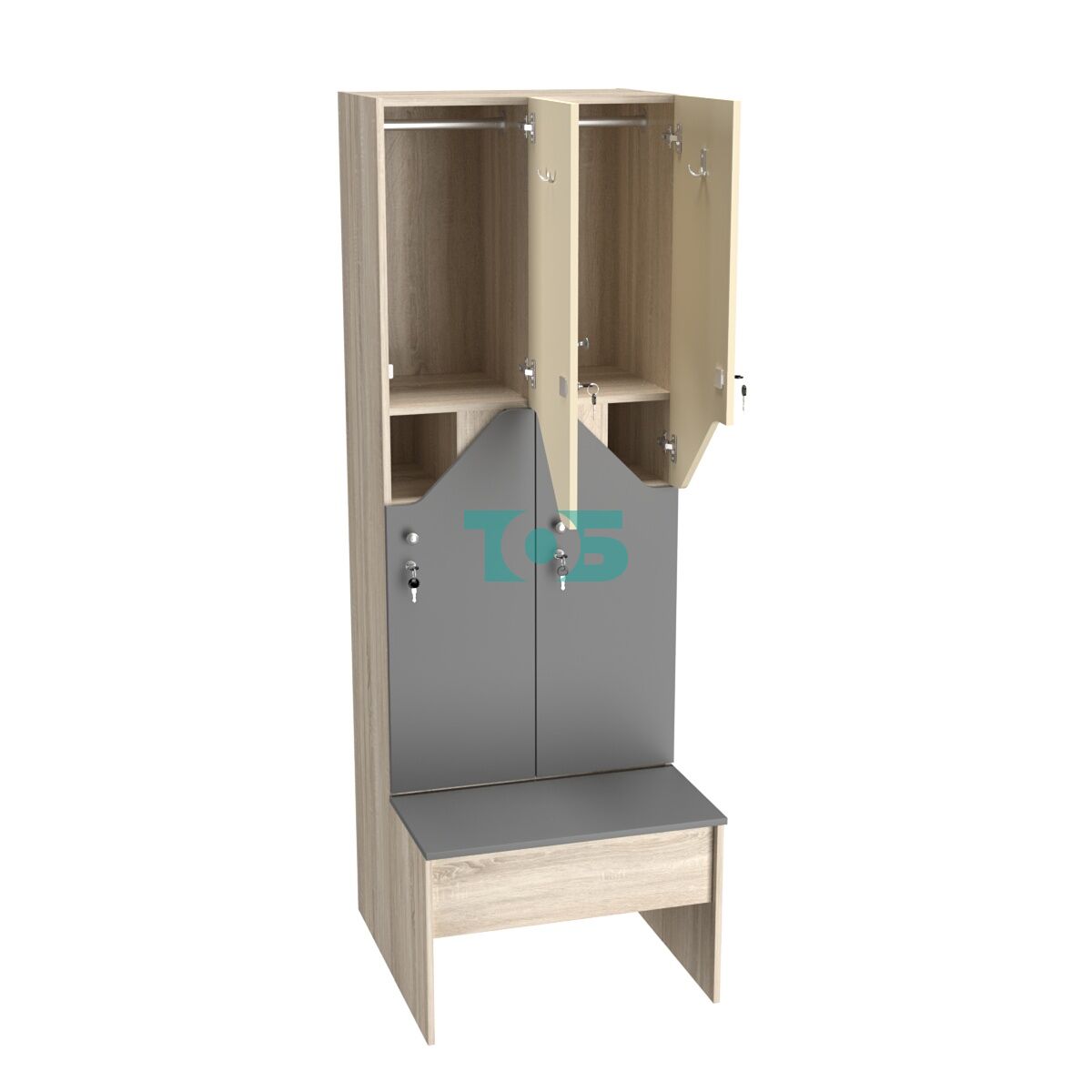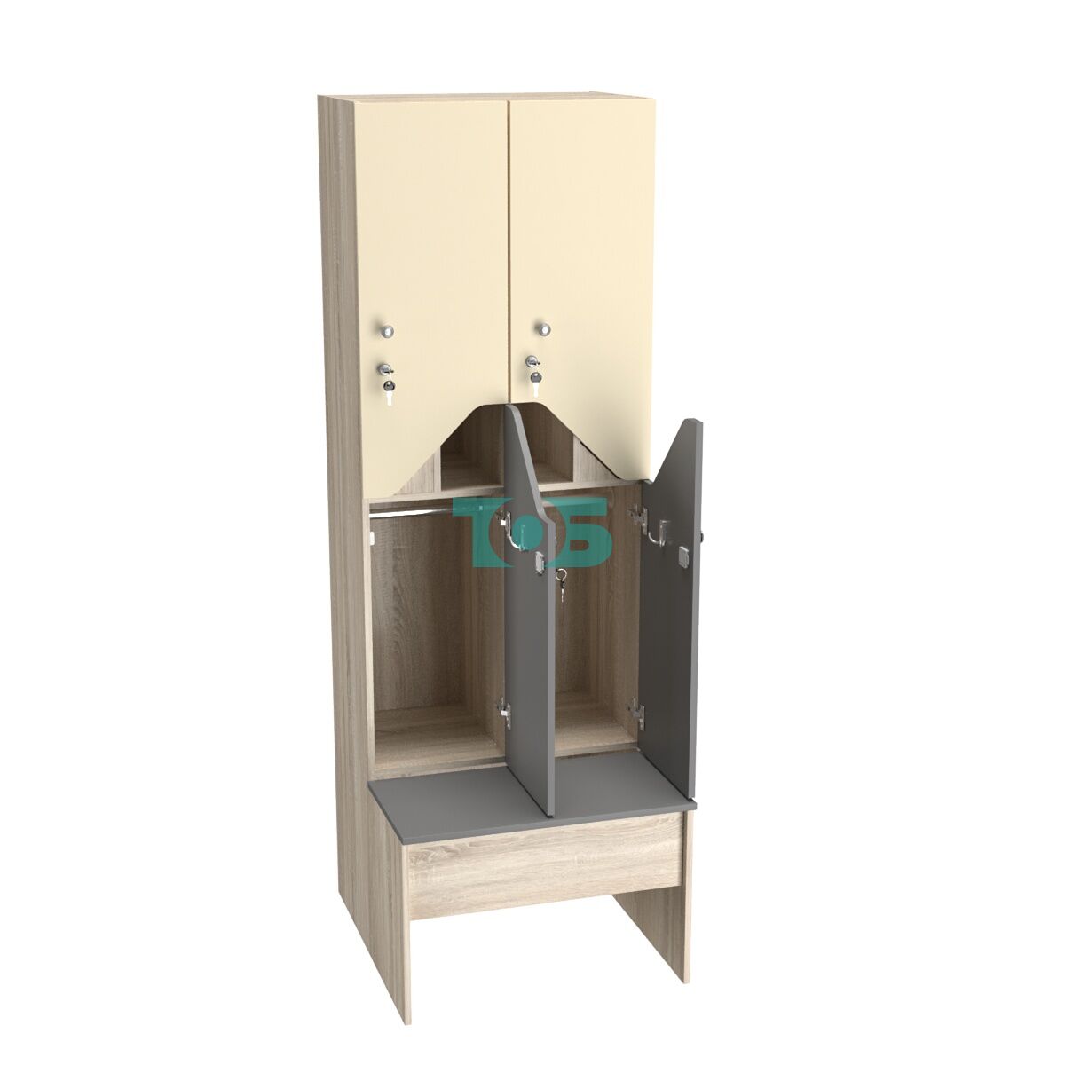 Скамейка: наличие скамейки делает шкаф более функциональным и удобным в использовании, позволяя рационально организовать пространство раздевалки.