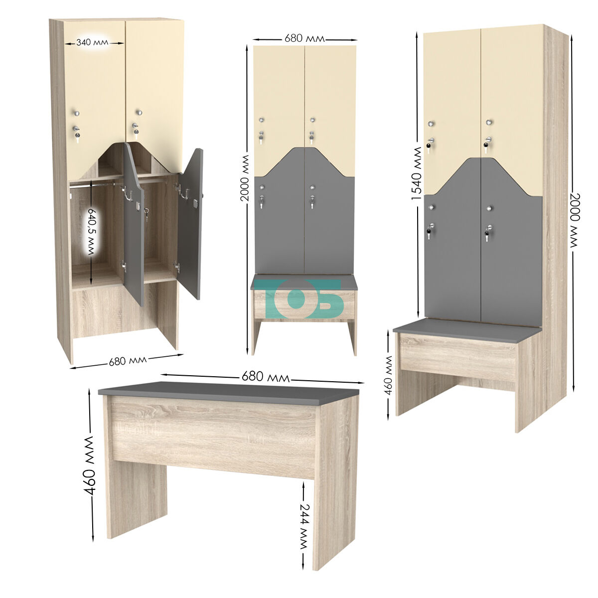 Габариты: глубина шкафа составляет 400 мм, а глубина скамейки — 350 мм. Такие размеры позволяют оптимально использовать пространство и обеспечивают удобство при использовании.