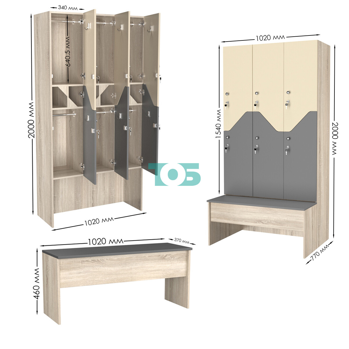 Скамейка: наличие скамейки делает шкаф более функциональным и удобным в использовании, позволяя рационально организовать пространство раздевалки.