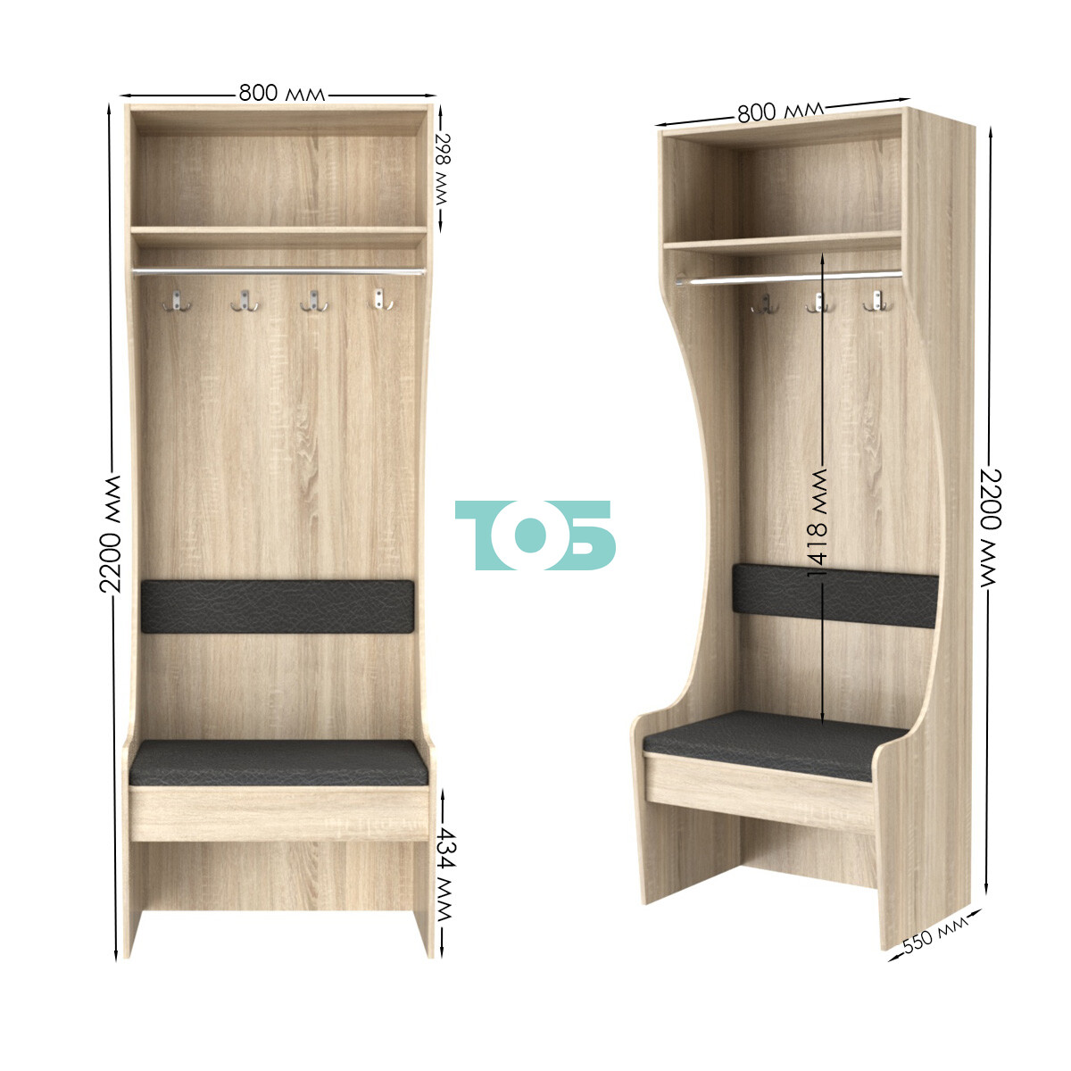 Комфорт: шкаф оснащён сидушкой и упором под спину, выполненными из экокожи. Это добавляет удобство и позволяет посетителям отдохнуть во время переодевания.