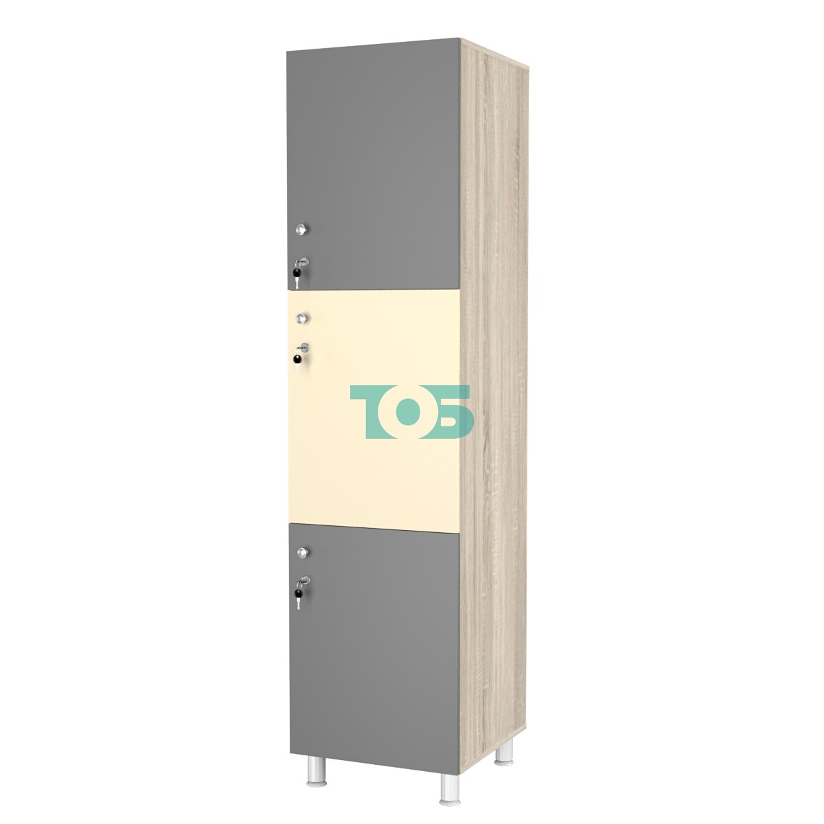• Шкаф для раздевалок СТАНДАРТ-ТРИО №2, Дуб сонома + Темно-серый + Крем Вайс