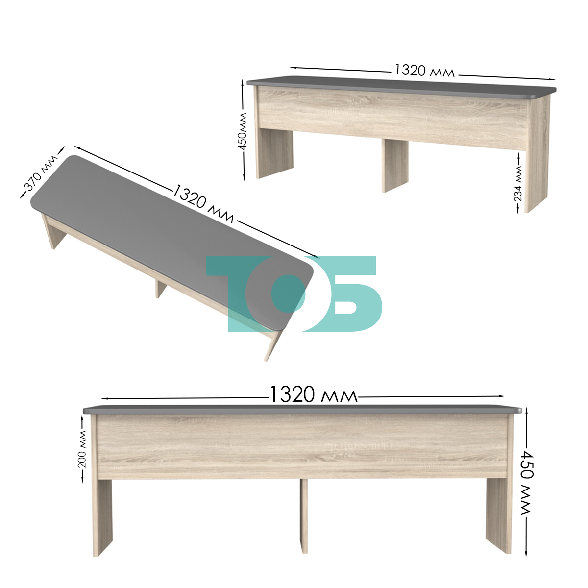 Габариты: высота — 450 мм, ширина — 1320 мм, глубина — 370 мм.