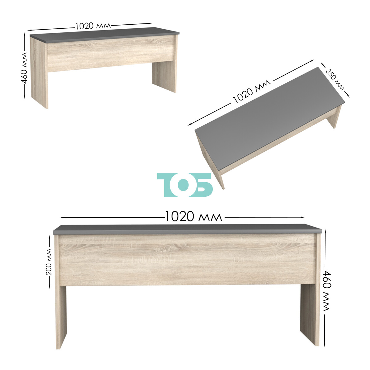 • Скамейка для раздевалок №2-3, Дуб Сонома и Темно-Серый 5-U2601