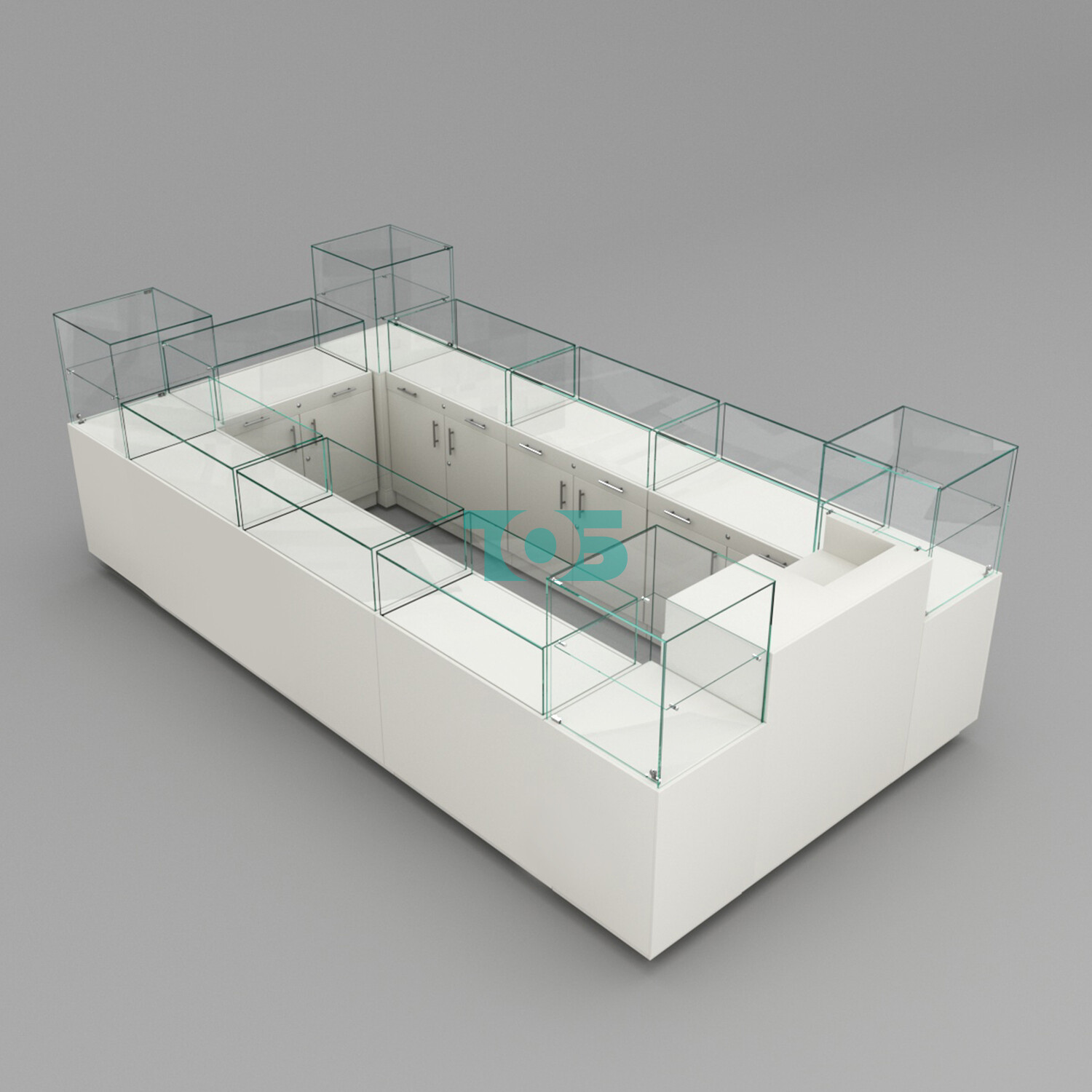 • Просторное и удобное расположение прилавков для эффективного размещения ювелирных изделий.