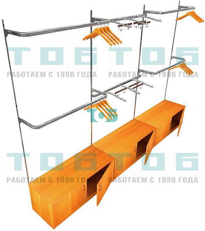 Торговая пристенная система серии METAL для одежды с задней стенкой и пристенными поручнями шириной 3000 мм №3