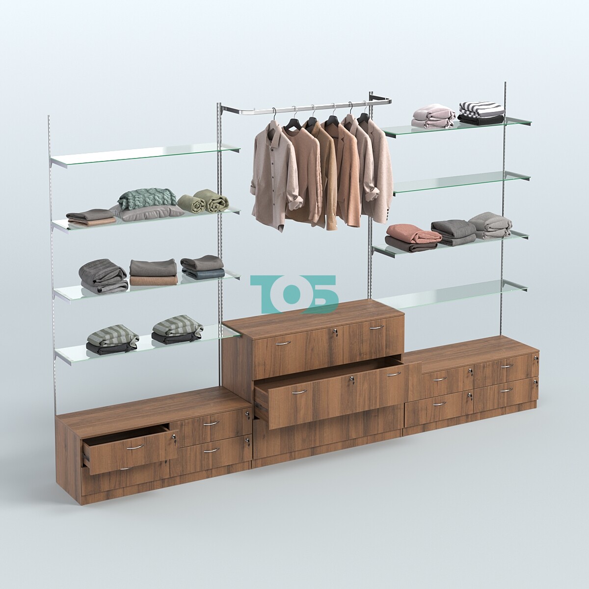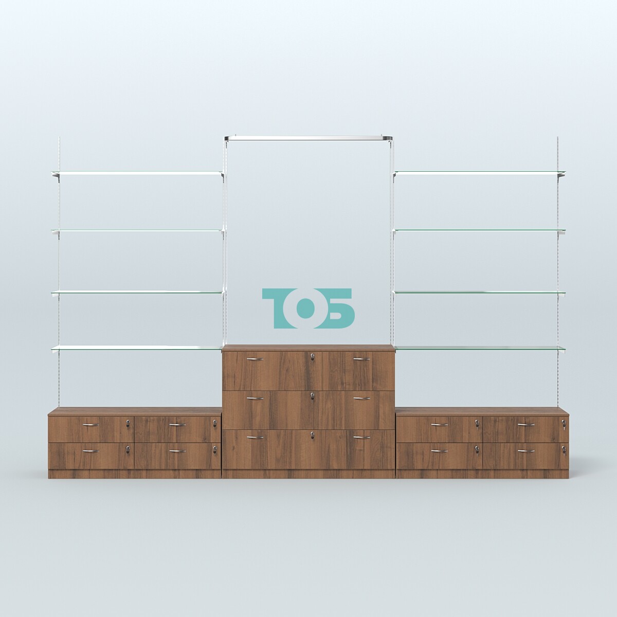 • Система Neo Fix с прозрачными полками №6 и тумбами T-12 и Т13, Орех