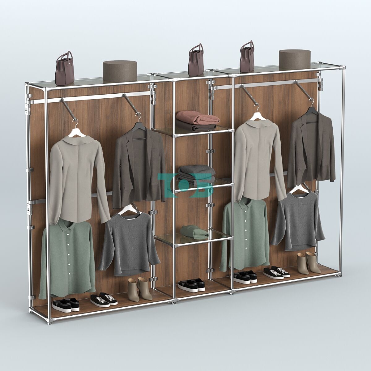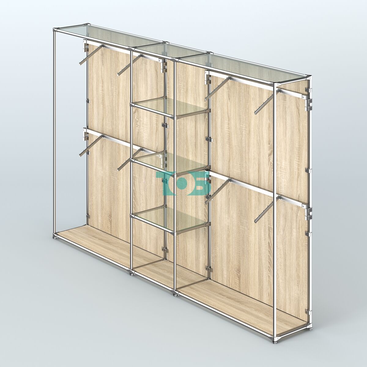 Отличия модели торговой системы ХРОМ (задняя стенка - ДСП) 3030 мм с прозрачными полками и поручнями №8: