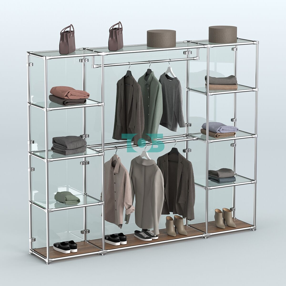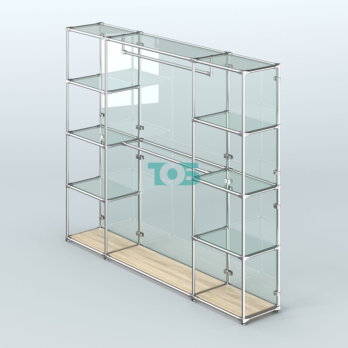 Торговая пристенная система серии METAL с поручнями для фасадной вывески одежды без задней стенки шириной 3000 мм №3