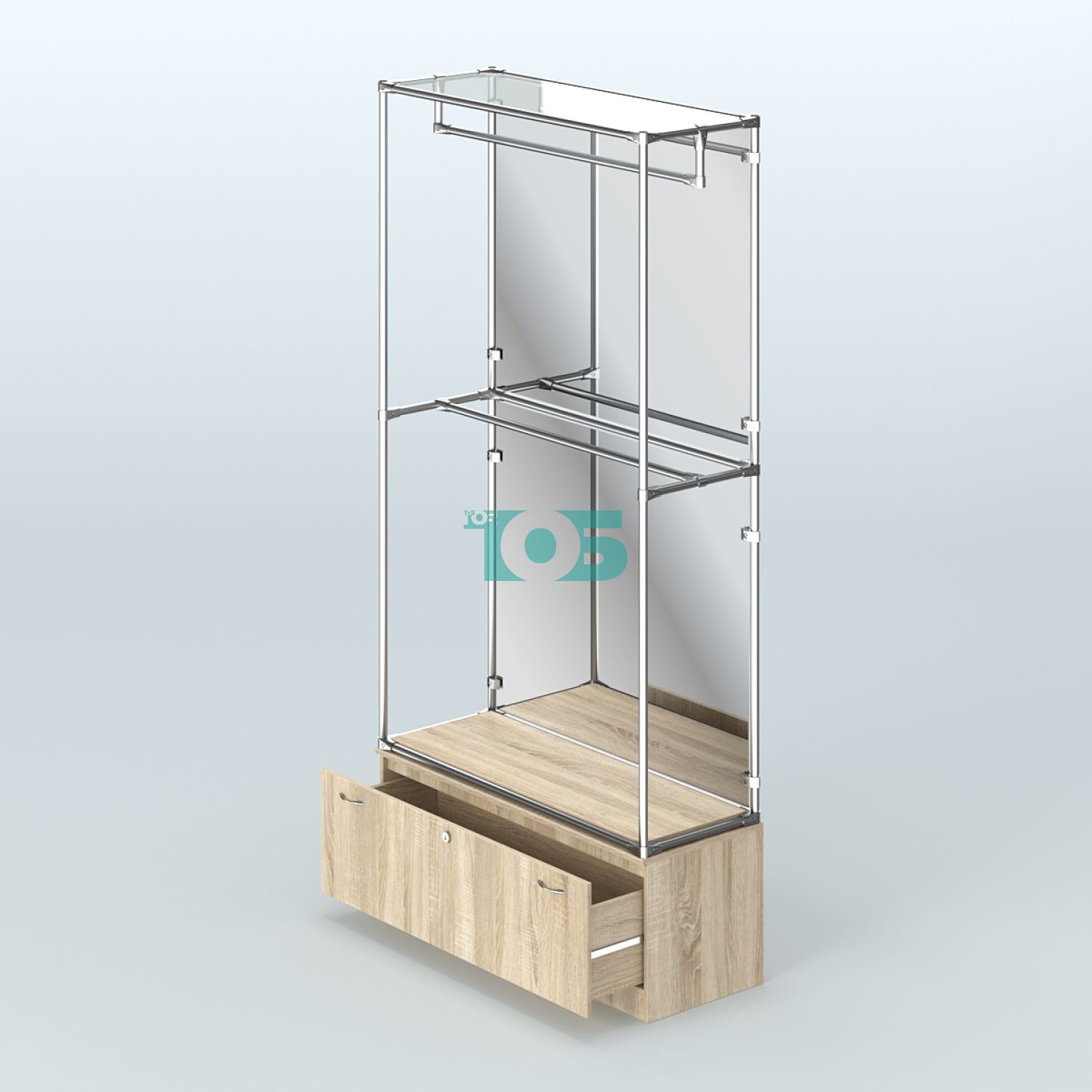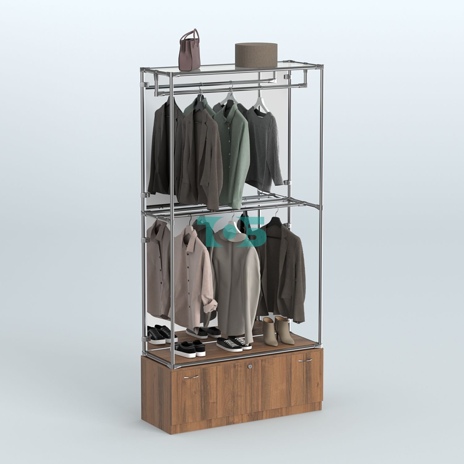 Настенная система для торговли одеждой METAL с комби- нированными поручнями без задней стенки шириной 1000 мм №3