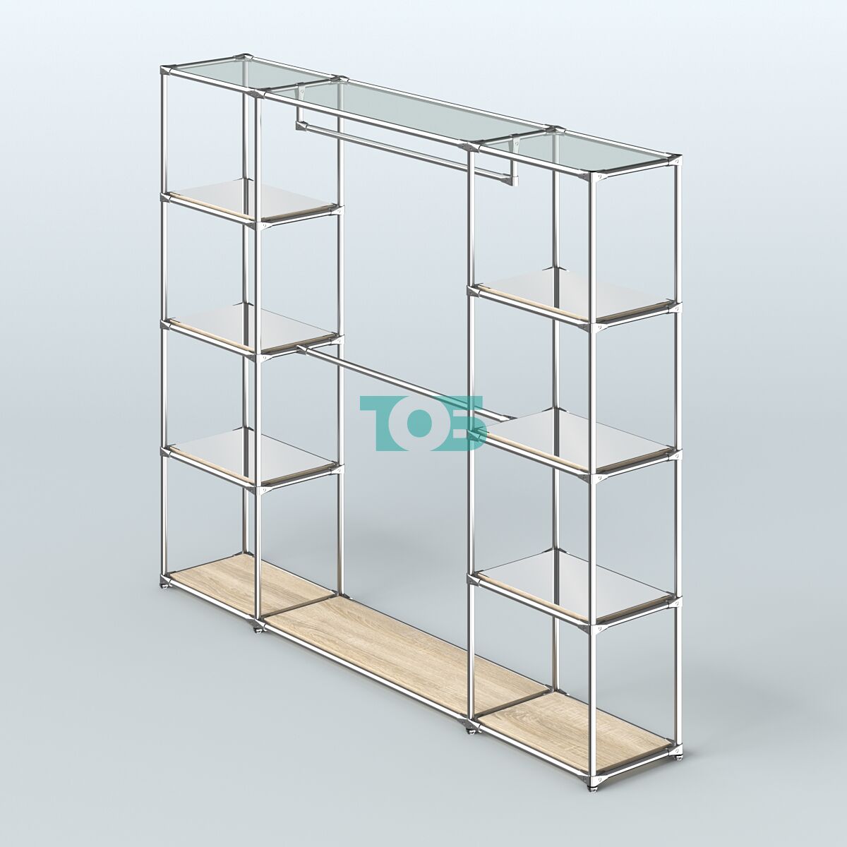 • Торговая система ХРОМ без ДСП 2430 мм с зеркальными полками и поручнями №3, Дуб Сонома