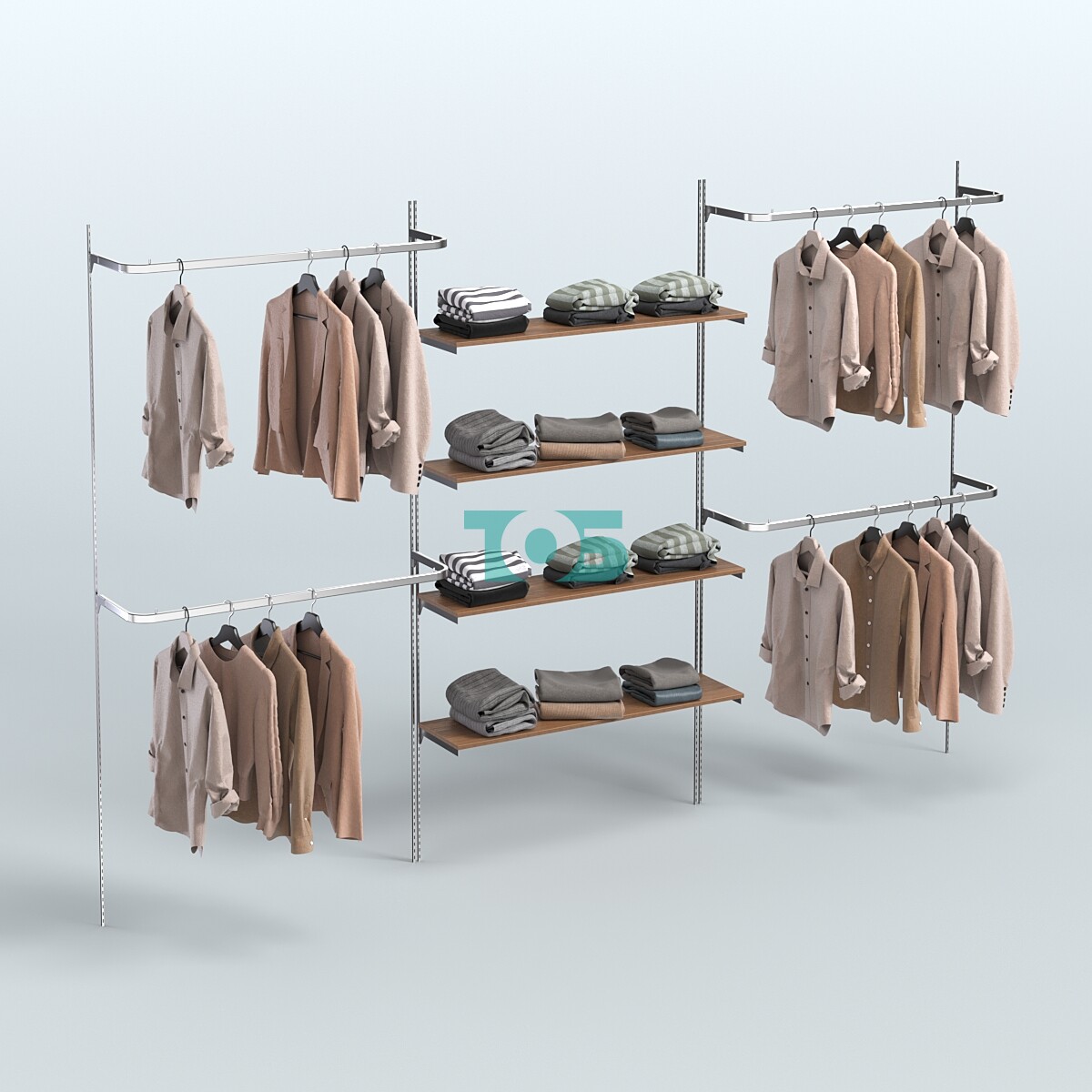 Настенная система для торговли одеждой METAL с комби- нированными поручнями без задней стенки шириной 1000 мм №3