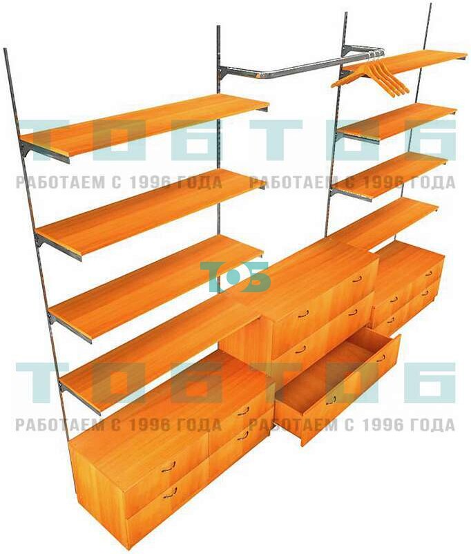 Настенная система с небольшими зеркальными полочками для торговли обувью с задней стенкой ДСП ФЕРЗЬ №2-4