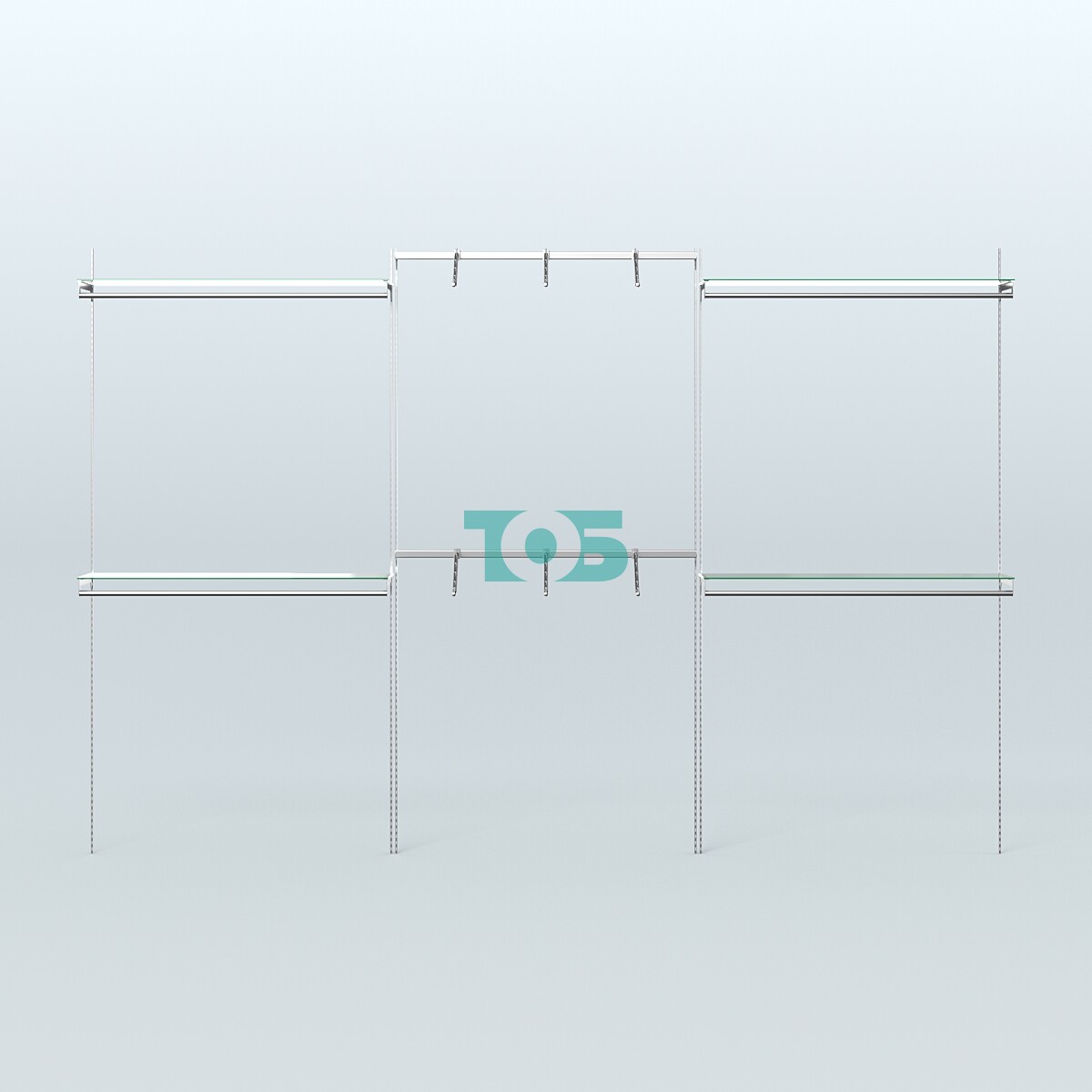 Высокая островная система METAL-2400 без задней стенки для одежды с пристенными поручнями и полками из прозрачного стекла №9
