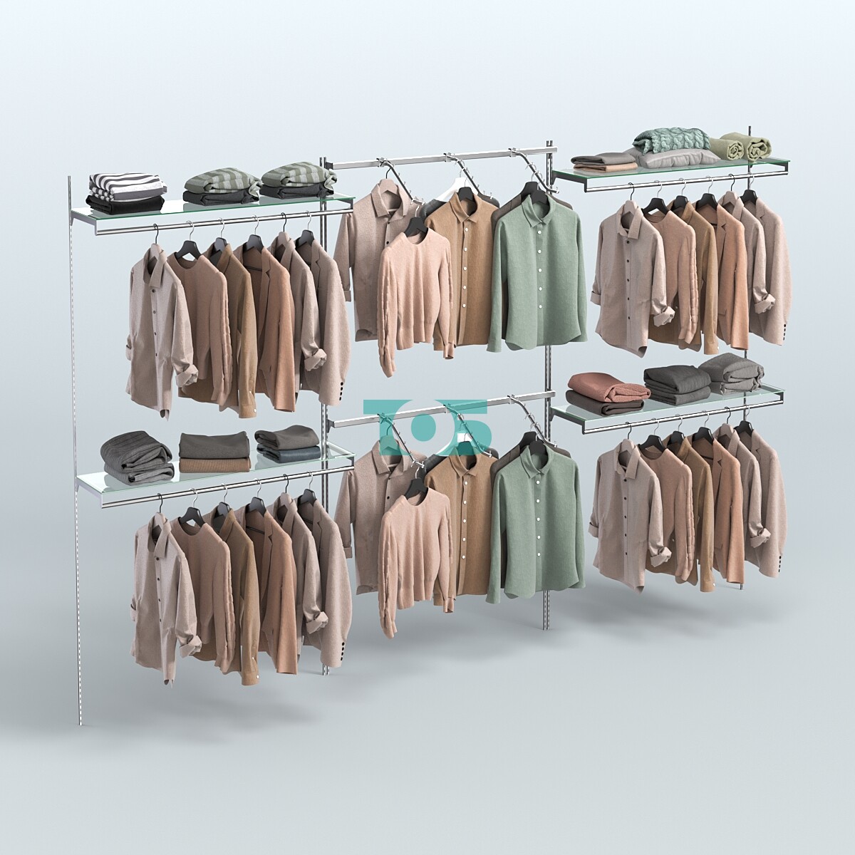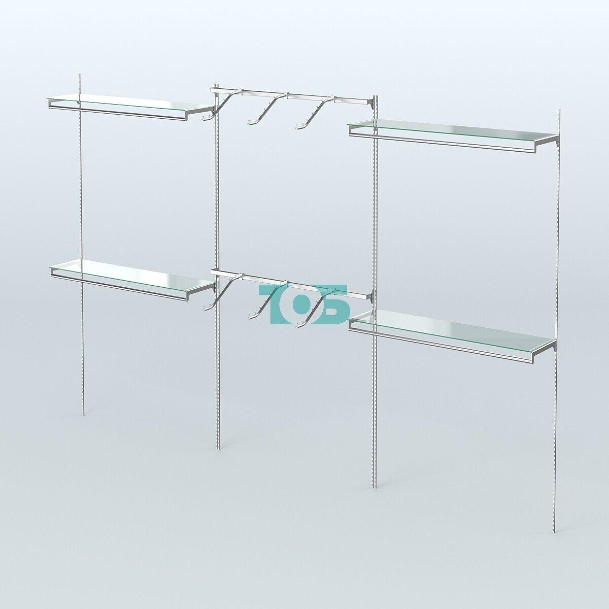 Торговая пристенная система серии METAL для одежды с задней стенкой и поручнями комби шириной 3000 мм №1