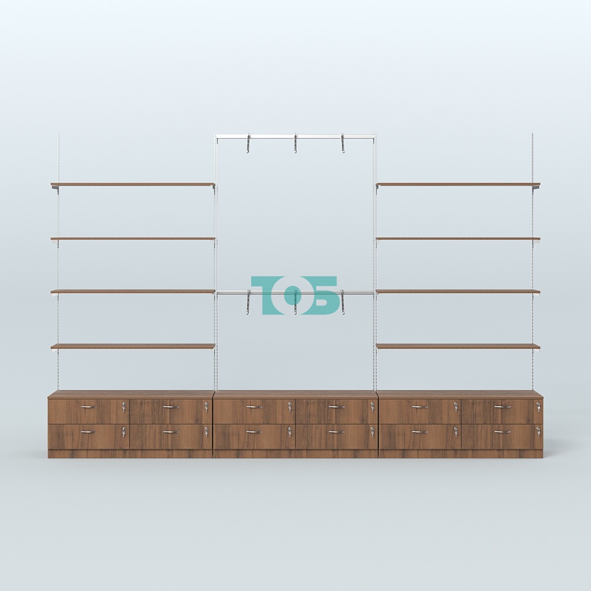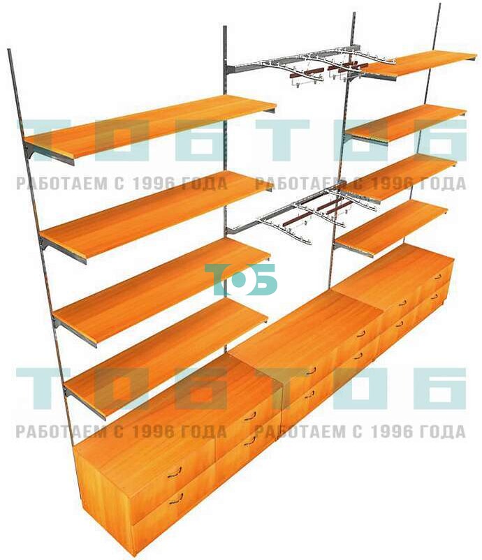 Торговая пристенная система серии METAL с комбинированными поручнями для одежды с задней стенкой шириной 1000 мм №3