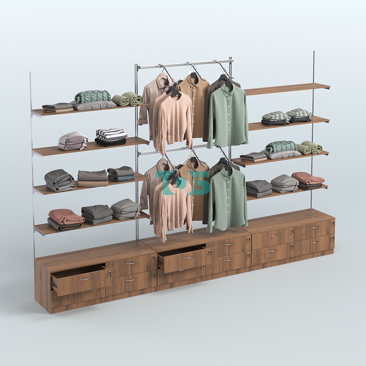 Настенная система для торговли одеждой METAL с комби- нированными поручнями без задней стенки шириной 1000 мм №3