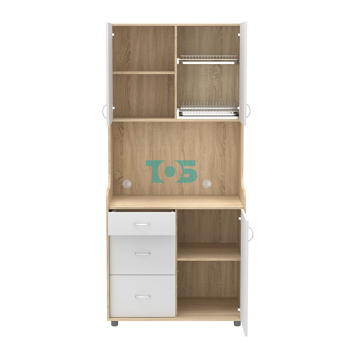 Глубина верхнего шкафа: 300 мм. Это позволяет разместить на нём необходимые предметы, сохраняя при этом достаточно места для комфортной работы. Верхний шкаф оснащен сушилкой для посуды.