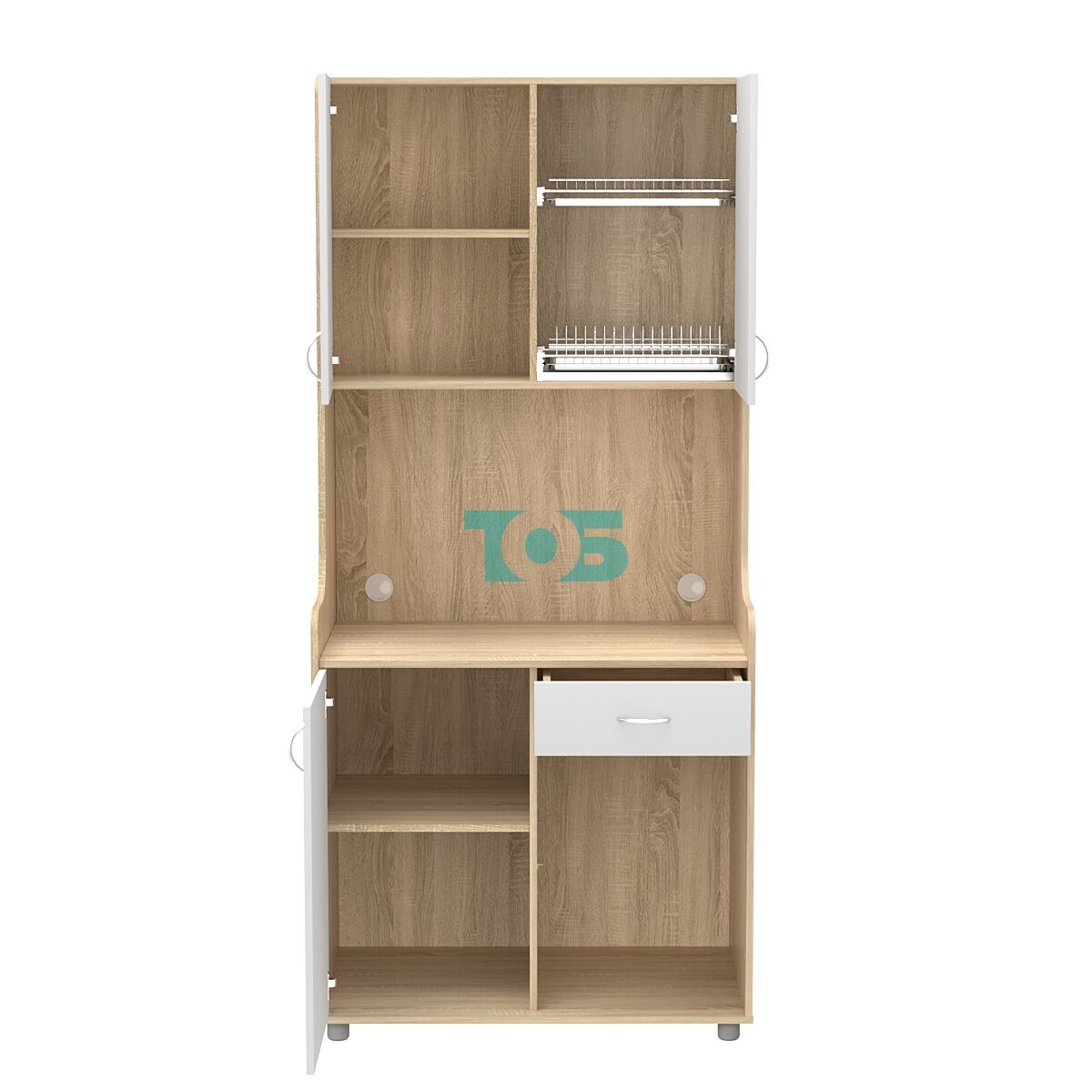 Глубина верхнего шкафа: 300 мм. Это позволяет разместить на нём необходимые предметы, сохраняя при этом достаточно места для комфортной работы. Верхний шкаф оснащен сушилкой для посуды.