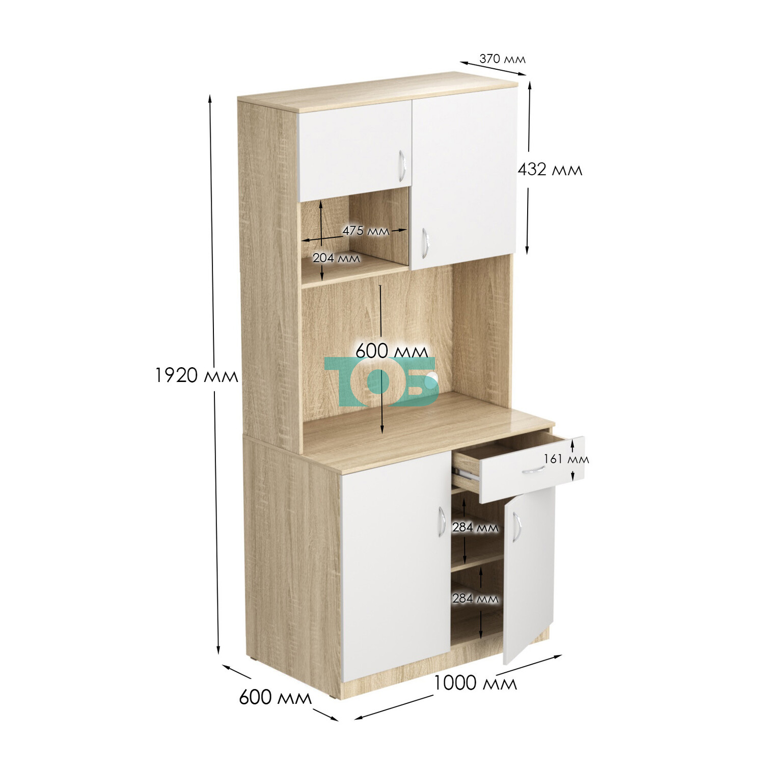 Ниша под микроволновую печь: размеры ниши составляют ВхШхГ: 296х482х350 мм, что позволяет удобно разместить микроволновую печь и обеспечивает лёгкий доступ к ней.