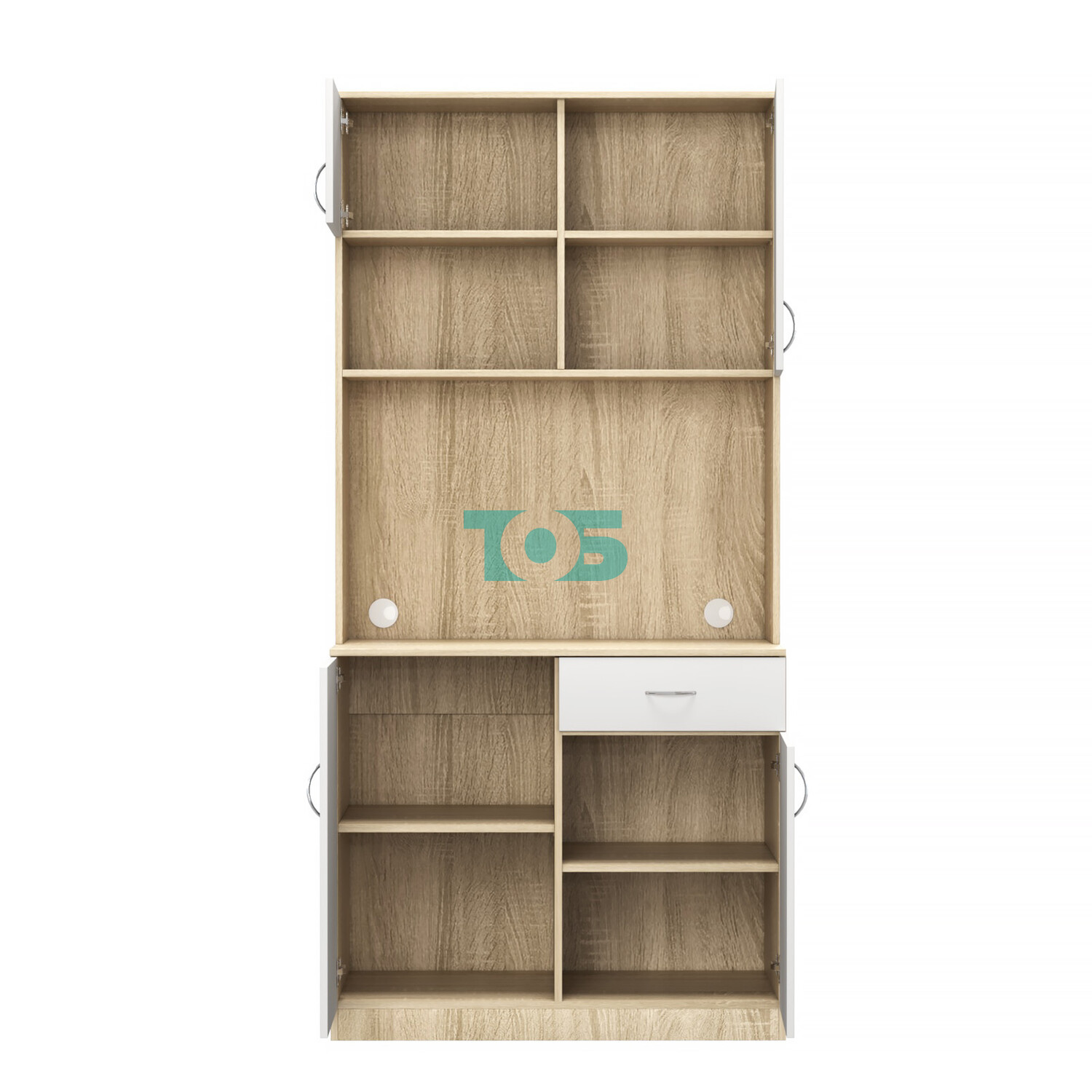 Полки: наличие трёх полок позволяет организовать хранение различных предметов, таких как чашки, тарелки, специи и т. д.