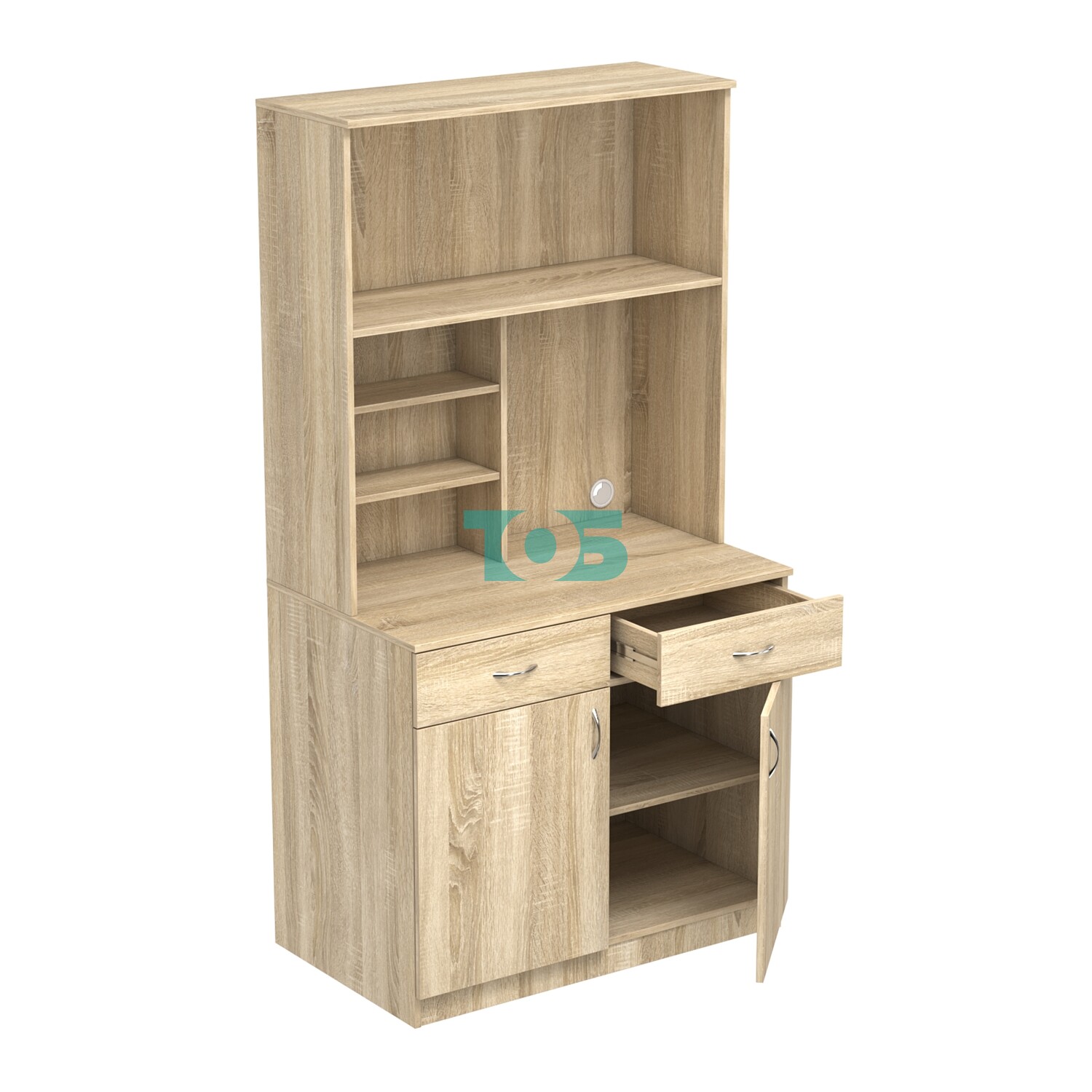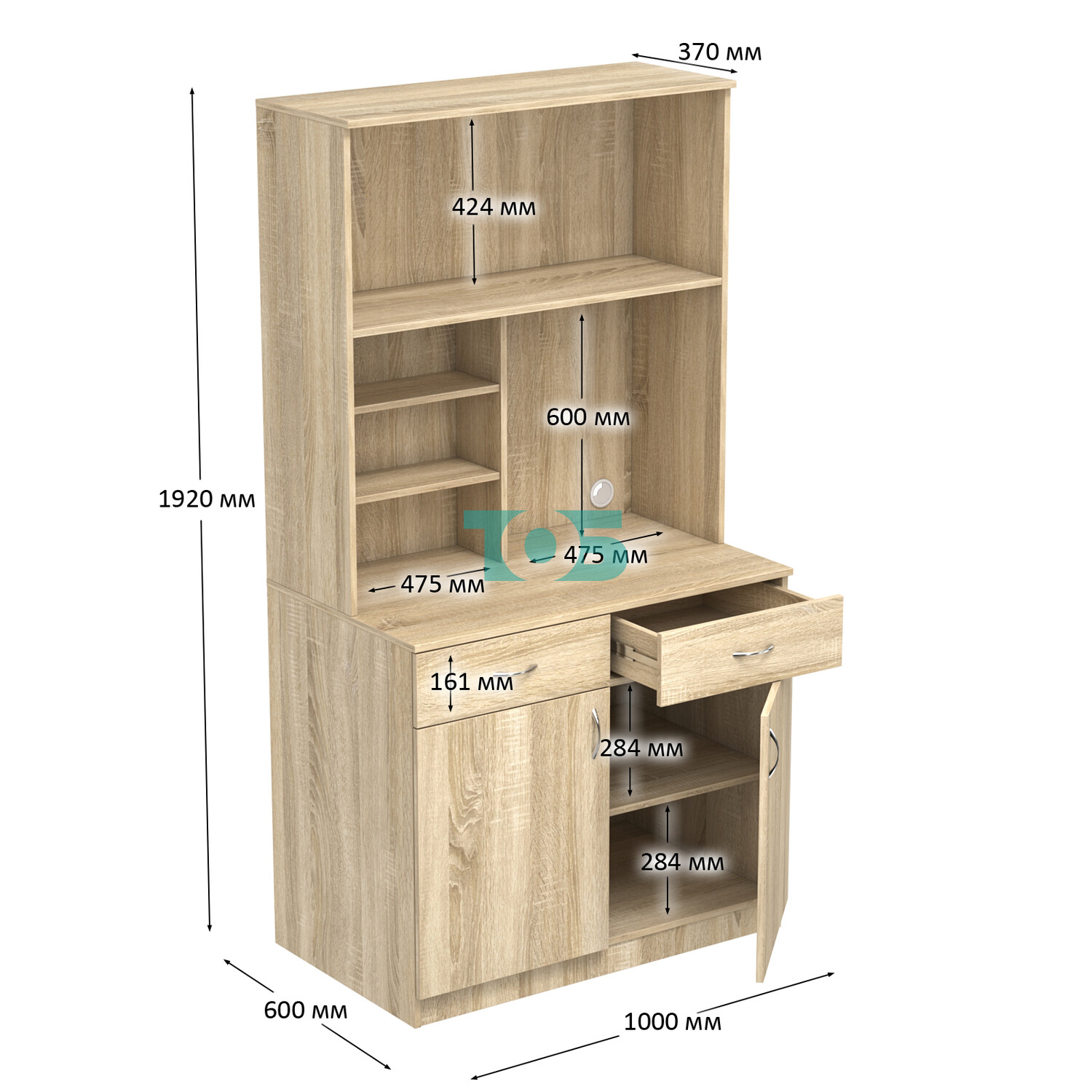 Полки: наличие трёх полок позволяет организовать хранение различных предметов, таких как чашки, тарелки, специи и т. д.