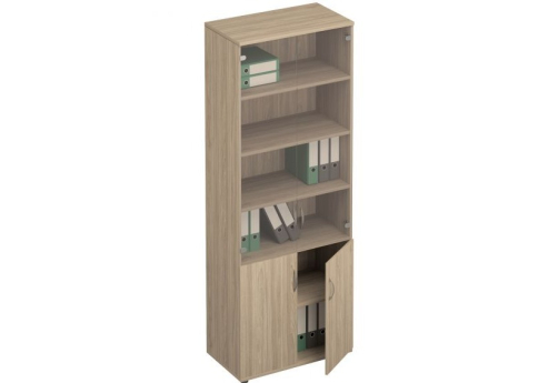 Шкаф две широкие секции 5 ниш (4 фасада ЛДСП, 3 ниши + 4 фасада ЛДСП, 2 ниши) Динен, цвет дуб мали-белый