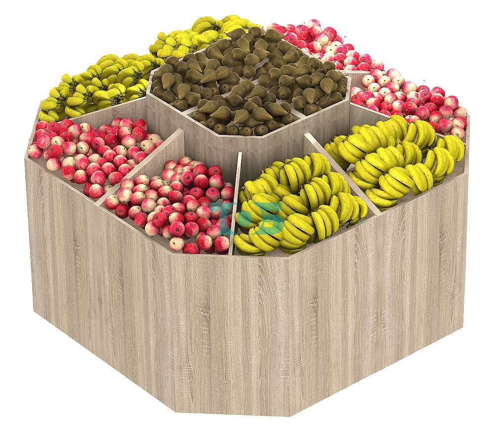 Островной овощной развал FRUIT-COURT №1 — это универсальное решение для эффективной демонстрации и продажи различных товаров, включая овощи, фрукты и продукты длительного хранения.