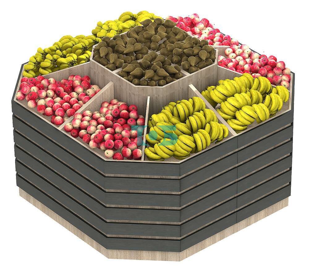 Островной овощной развал FRUIT-COURT №5 сочетает функциональность и привлекательный дизайн, что делает его отличным выбором для торговых точек, стремящихся оптимизировать пространство и улучшить представление своих товаров.