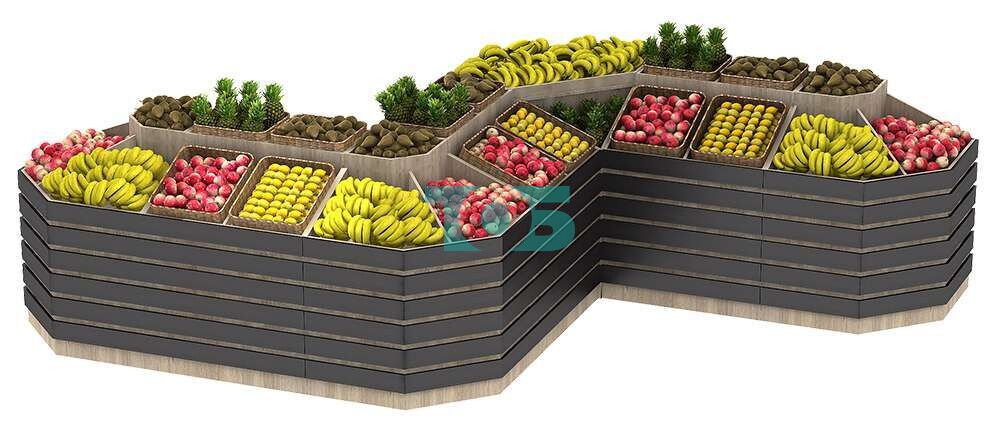 Угловой овощной развал FRUIT-COURT №7 представляет собой функциональное и эстетически привлекательное решение для торговых точек, обеспечивая удобство работы и привлекательный вид товаров.