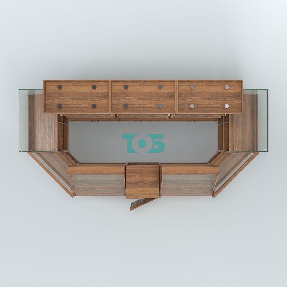 - выполнен в каркасе из ламинированного ДСП 16 мм и стекла;