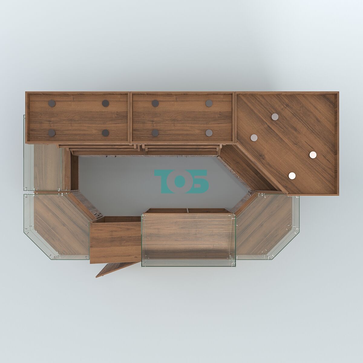 - выполнен в каркасе из ламинированного ДСП 16 мм и стекла;