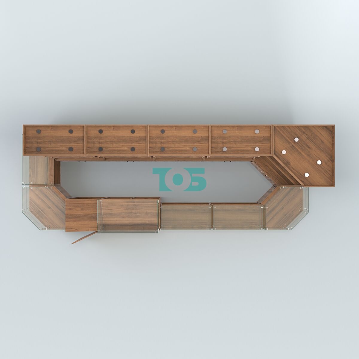 - выполнен в каркасе из ламинированного ДСП 16 мм и стекла;
