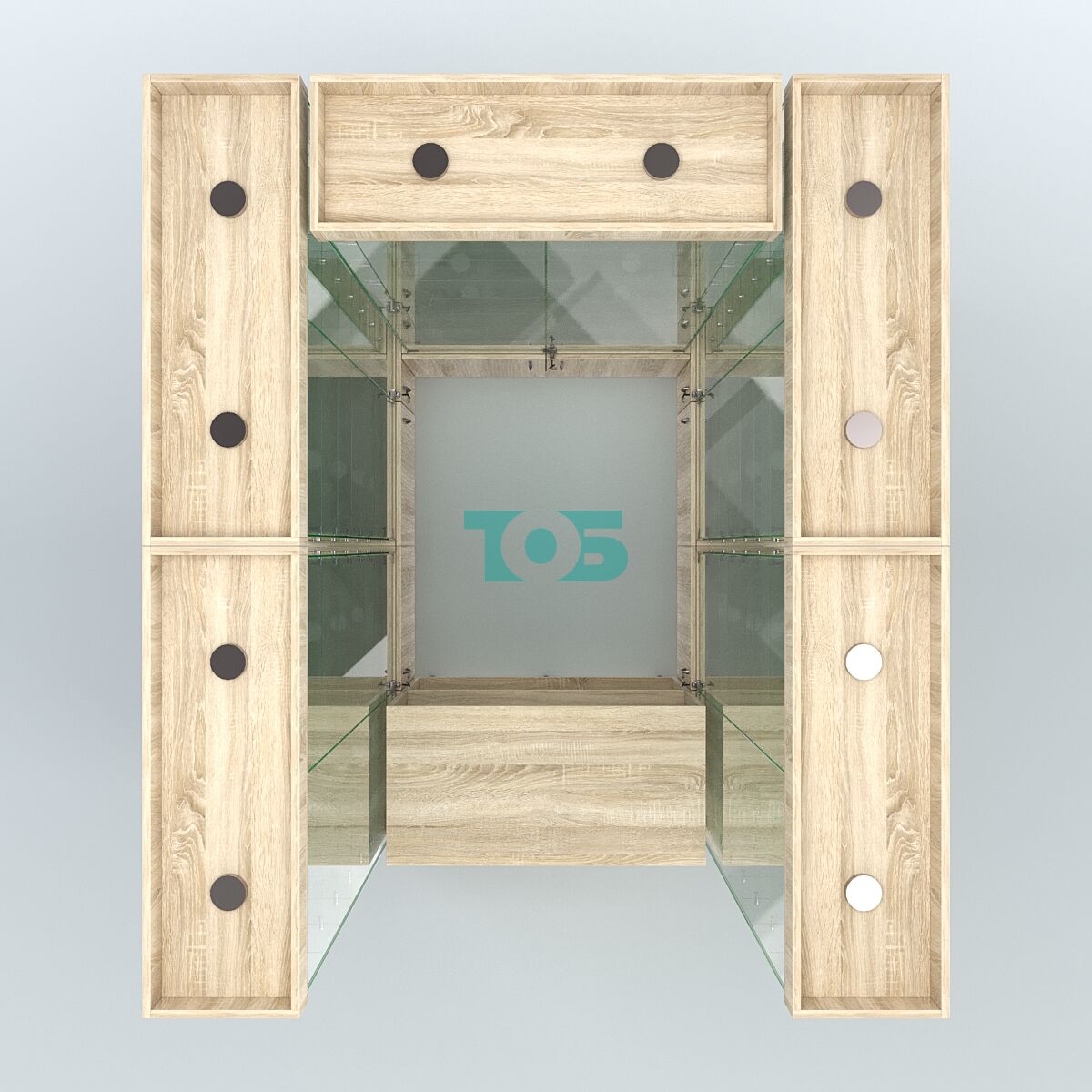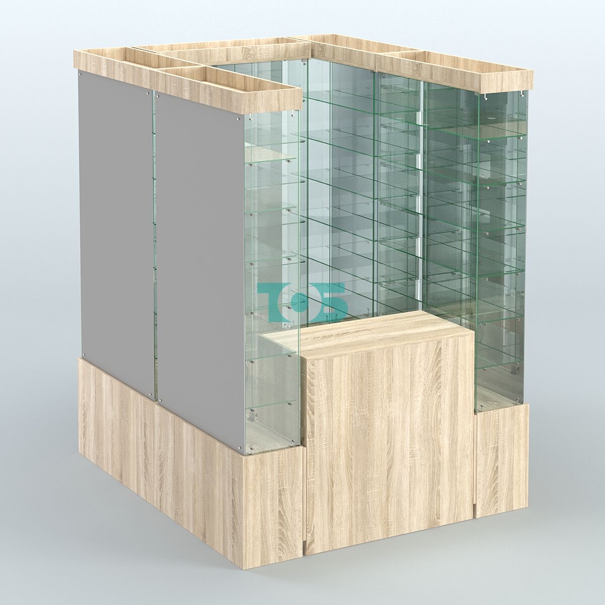 Габаритные размеры павильона могут быть изменены исходя из стандартных блоков витрин, что позволяет адаптировать его под конкретные потребности и условия размещения.